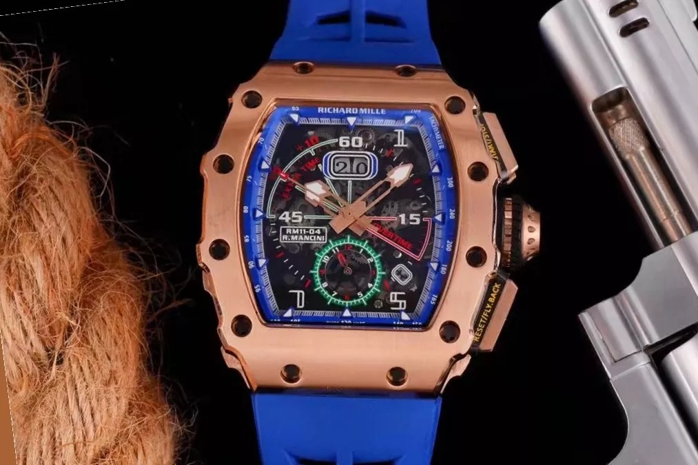 RM 11-03 Skeleton Rose Gold Blue Strap 41mm