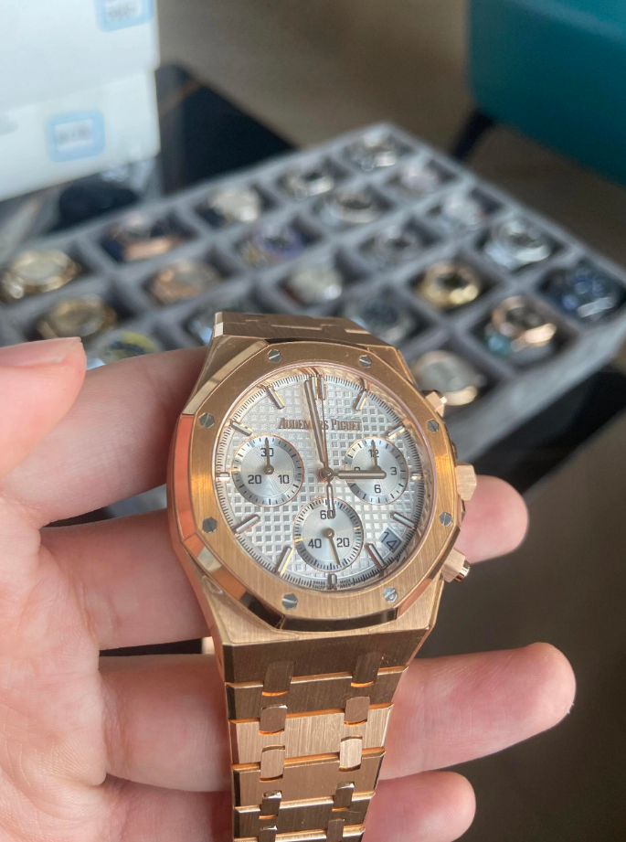 ROYAL OAK Pink Gold Silver-Toned Dial CHRONOGRAPH 41mm