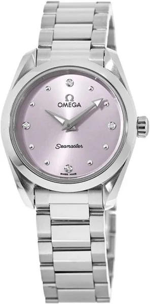 OMEGA Seamaster Aqua Terra 28mm Glossy Lilac Diamond Dial Ladies Watch