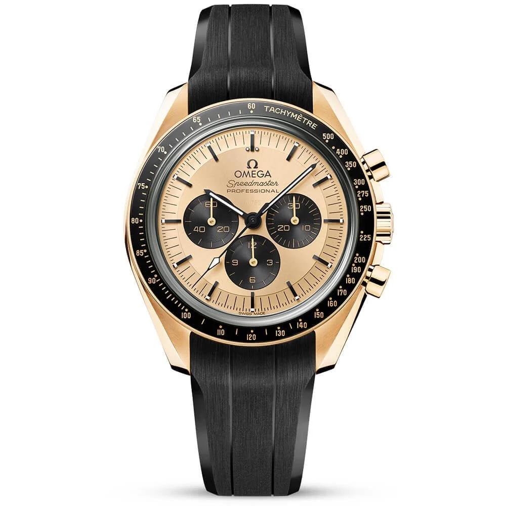 OMEGA Speedmaster Moonwatch 18ct Moonshine Gold Dial Rubber Strap Watch