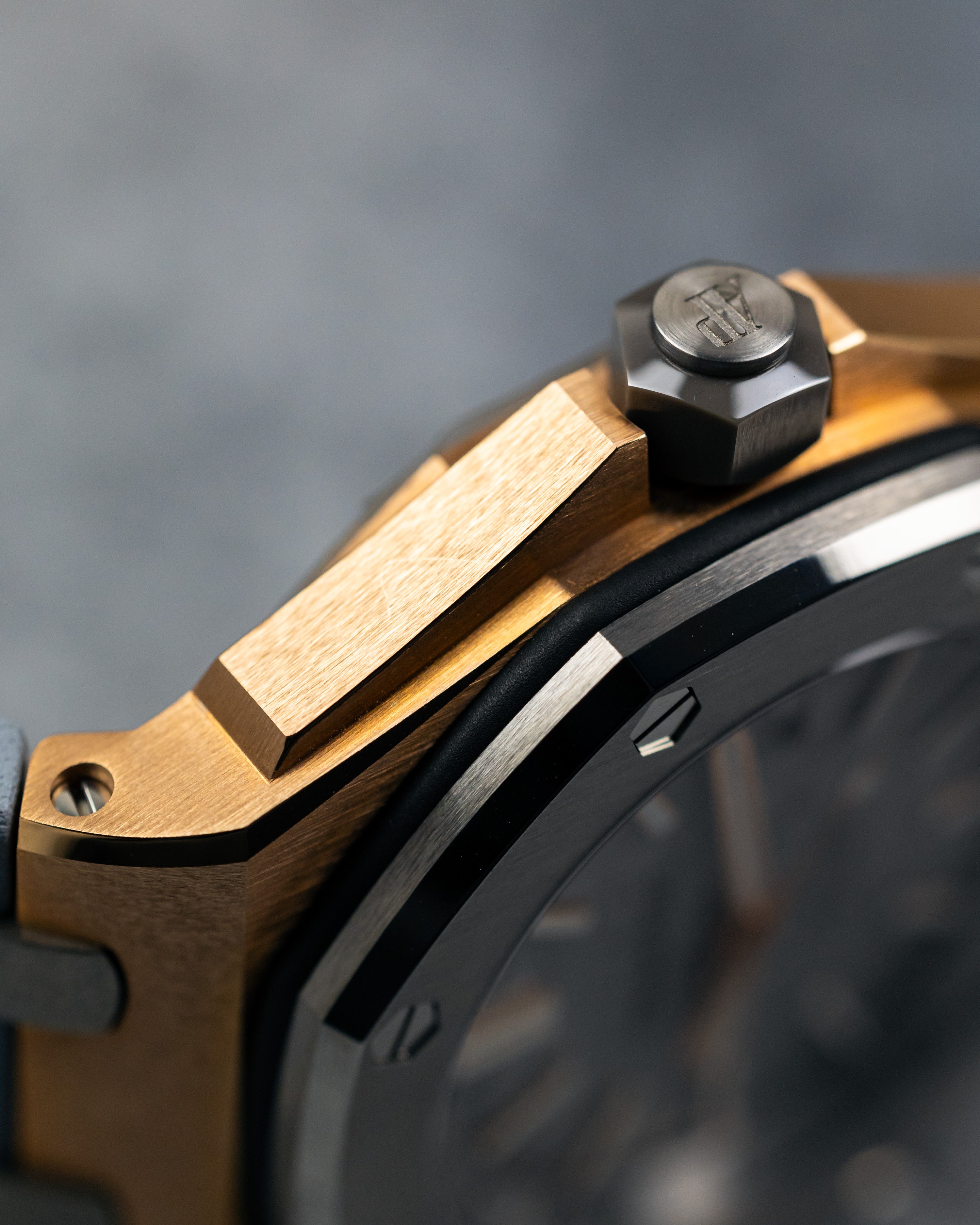 Limited edition of 500, encased in 18k rose gold, titanium bezel surrounding a grey Mega Tapisserie dial on a grey leather strap.
