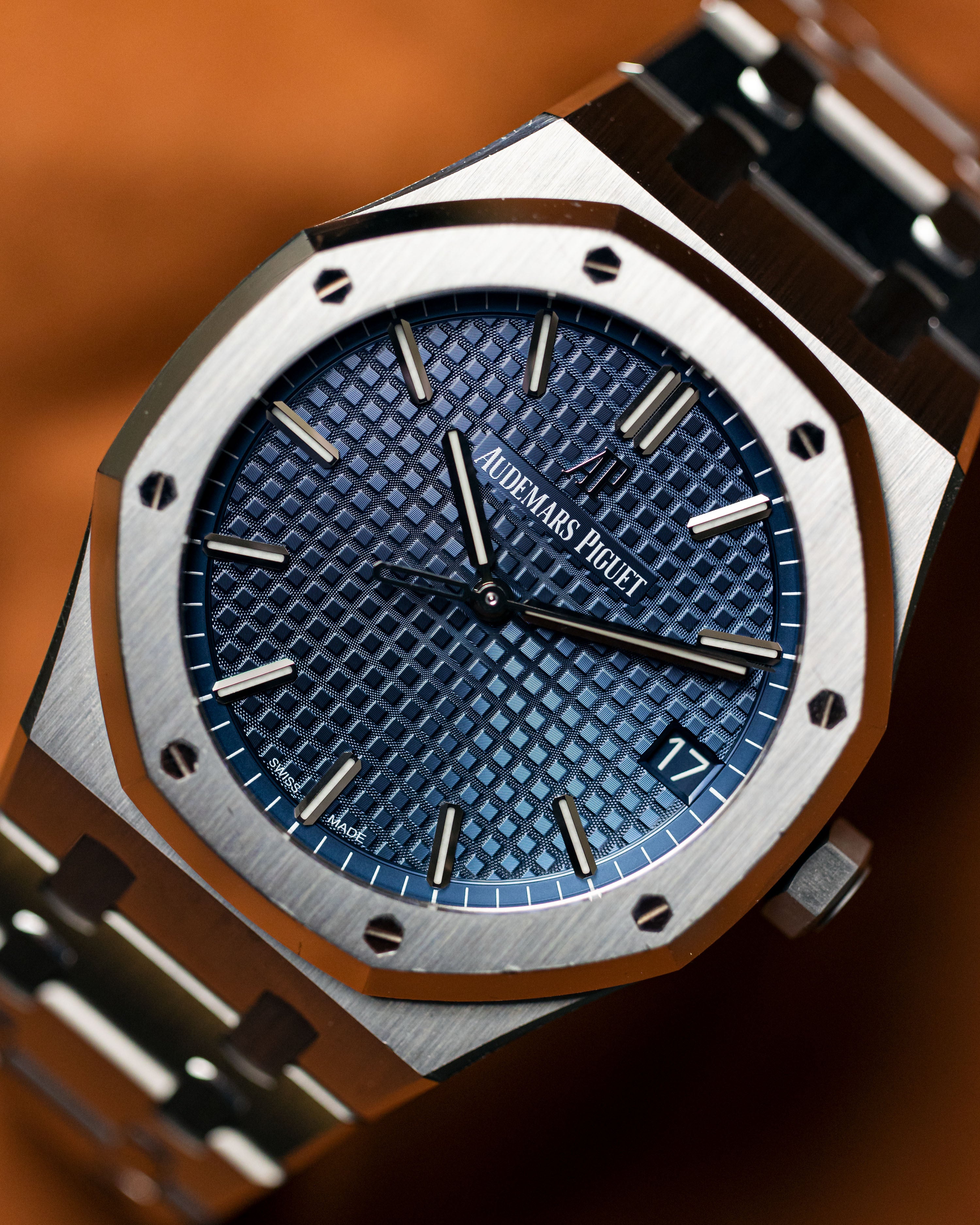 At 41mm in diameter, the 15500ST is a superb and iconic steel sports watch. The hand-finished links almost look as if they’re lighting up one by one when they catch the light. By the time this model was released, the blue dial was only available at the boutique, making it an exceptionally rare watch on our shores.