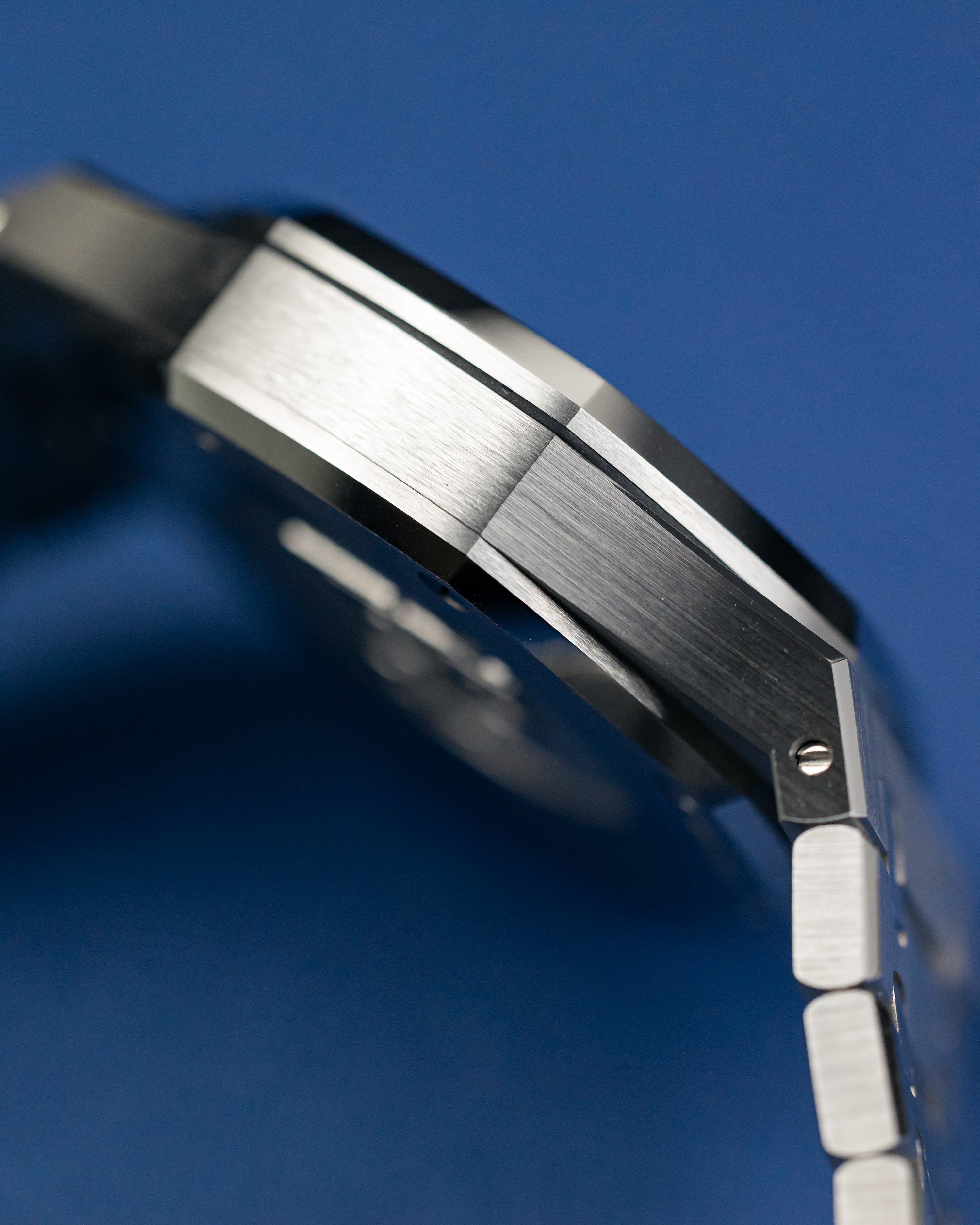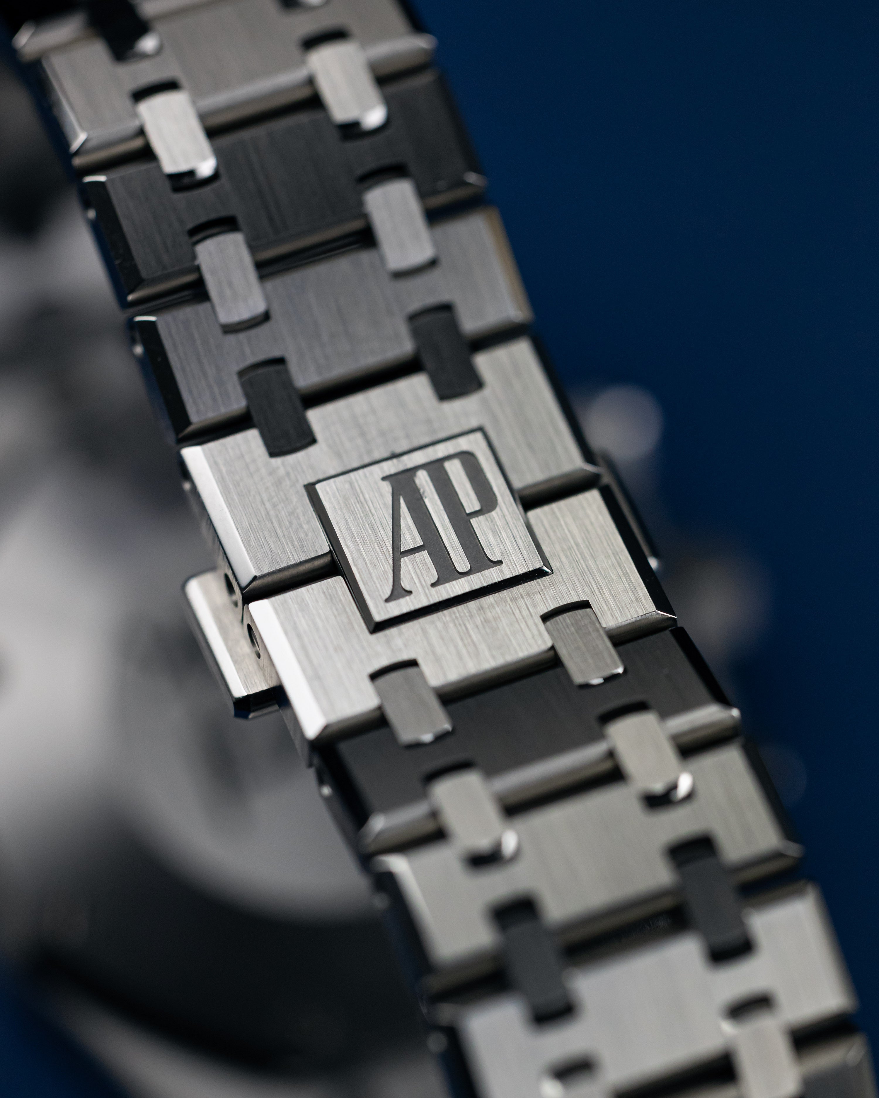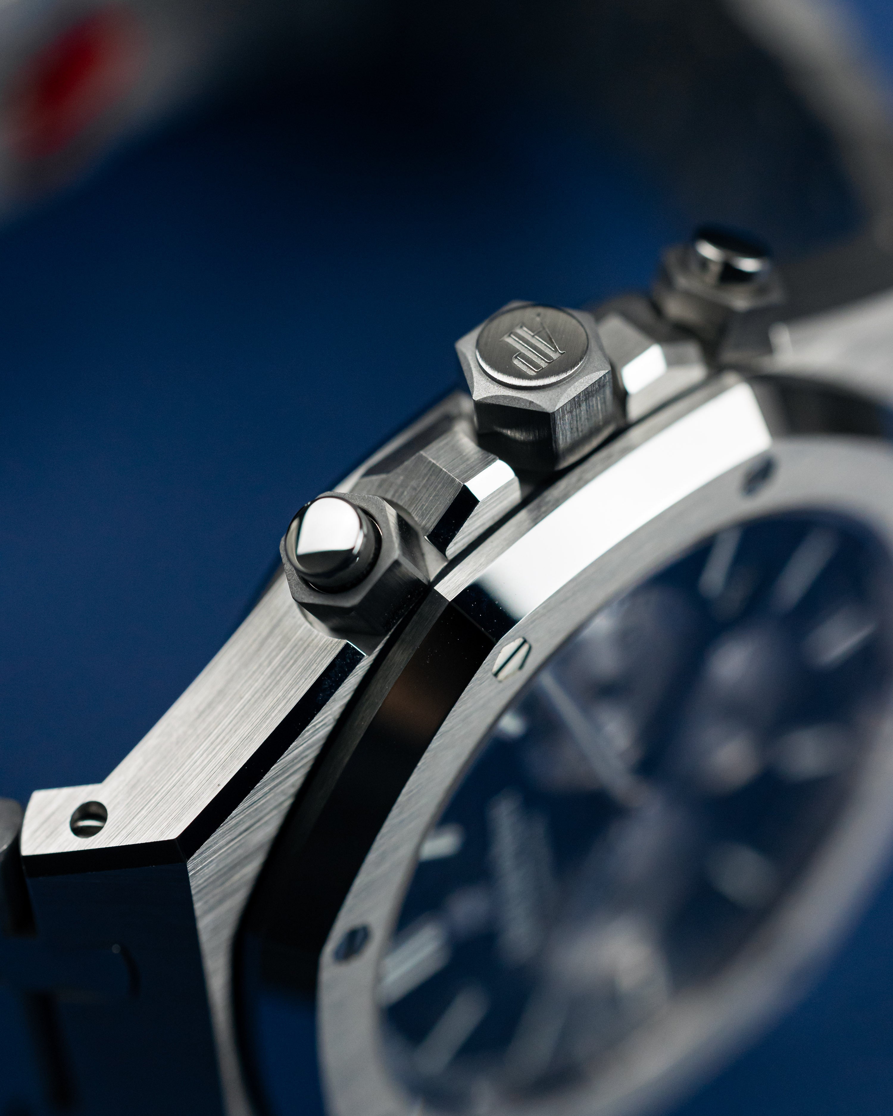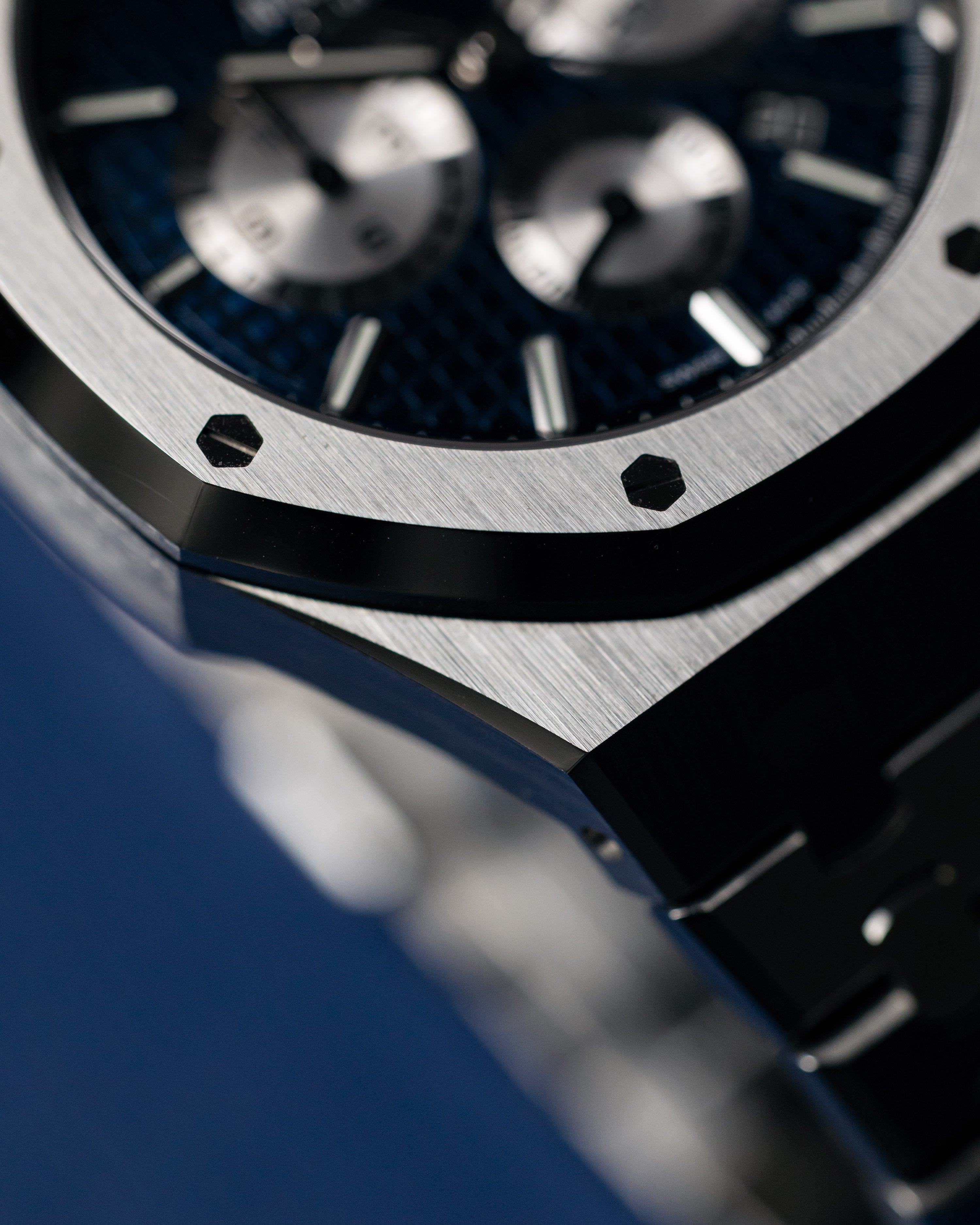 Encased in 41mm stainless steel surrounding a blue Grand Tapisserie patterned dial paired with the rhodium-toned counters works harmoniously.
