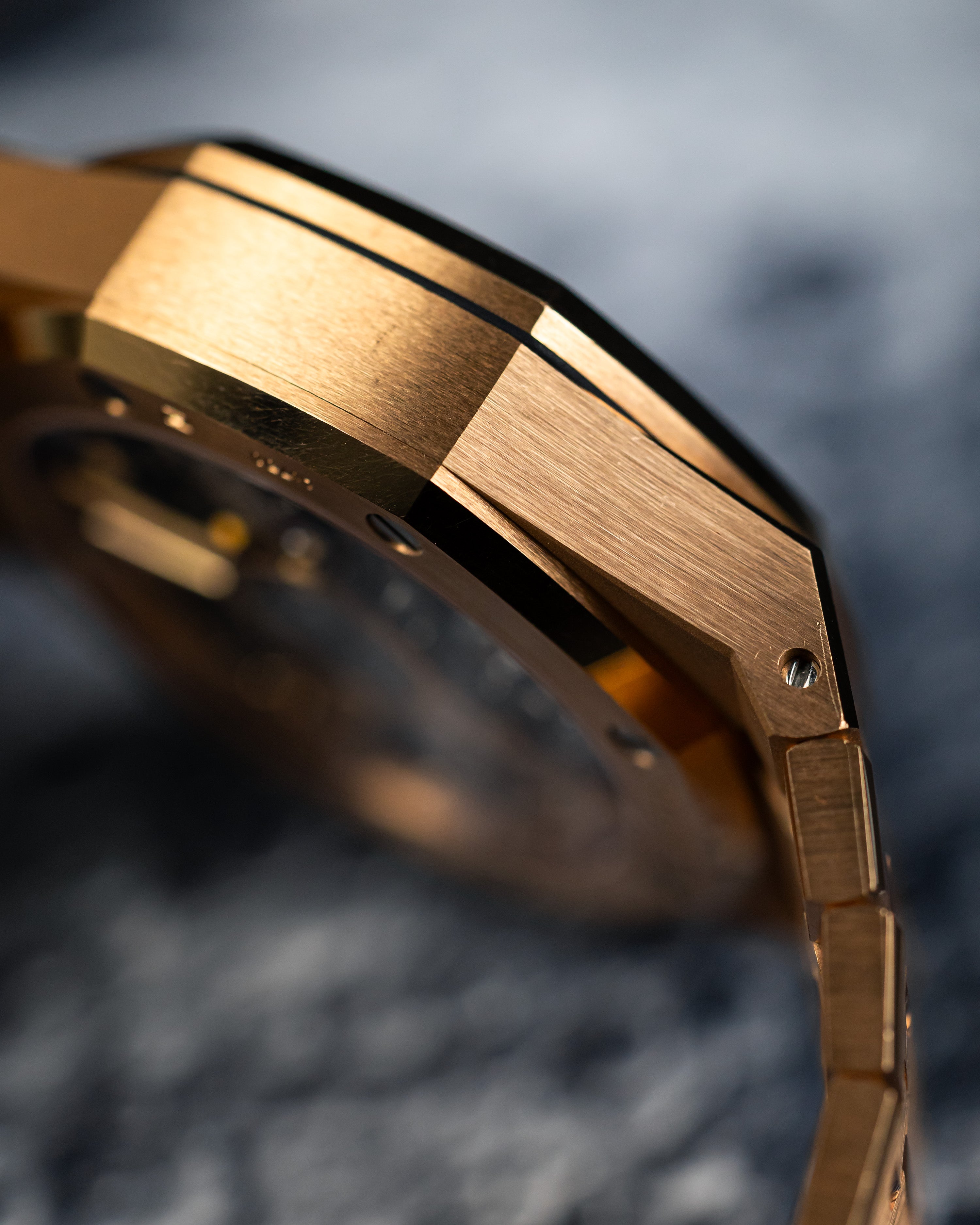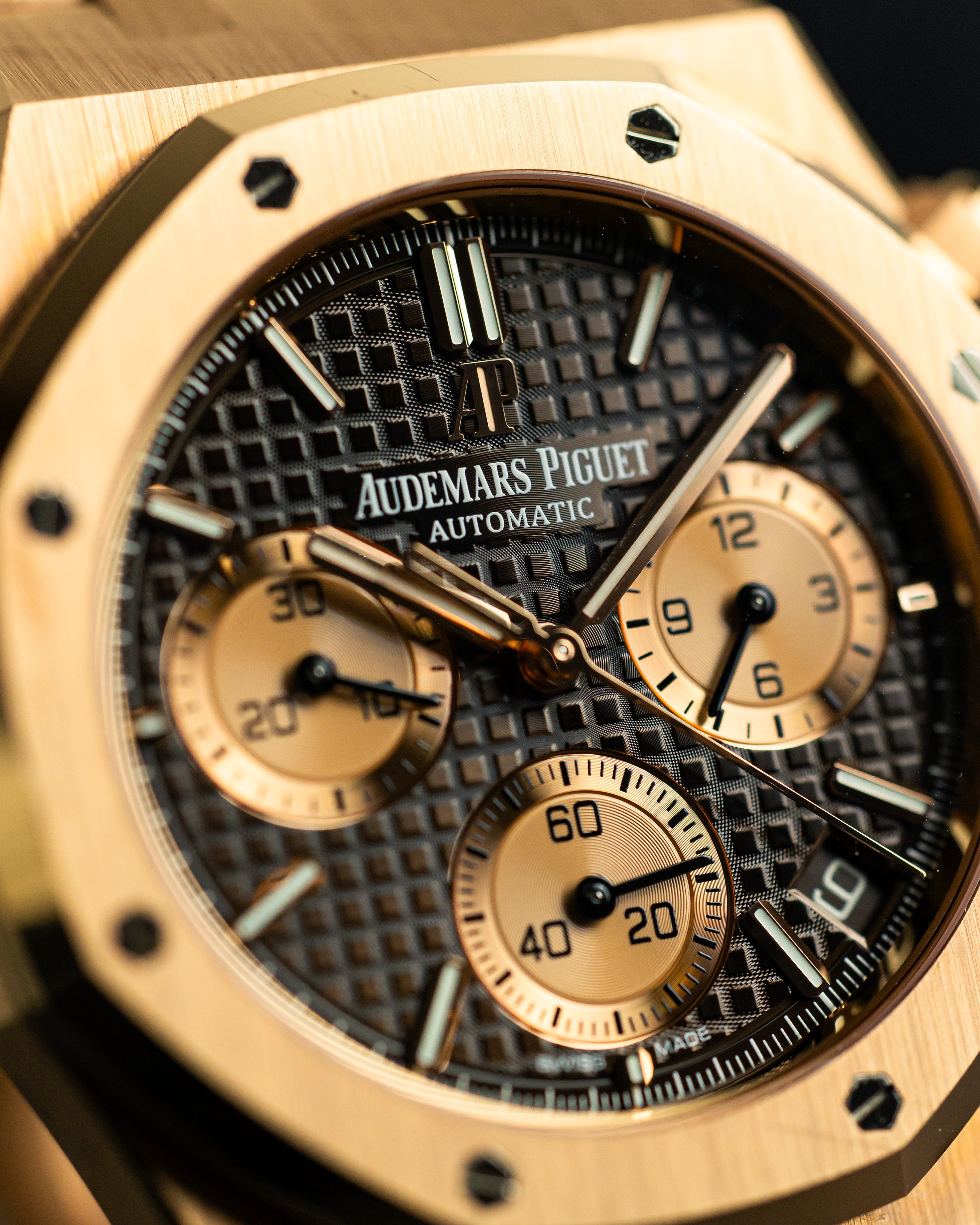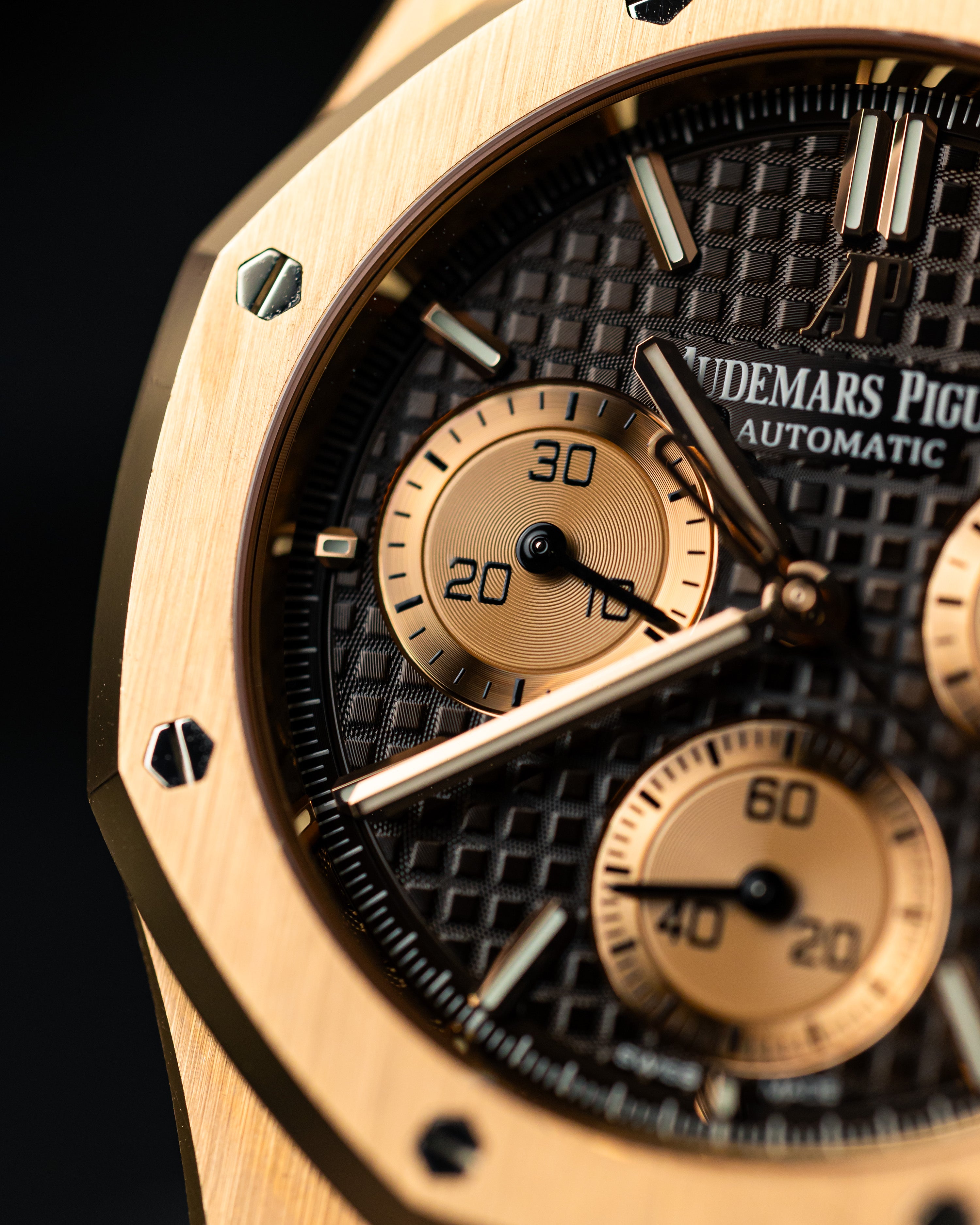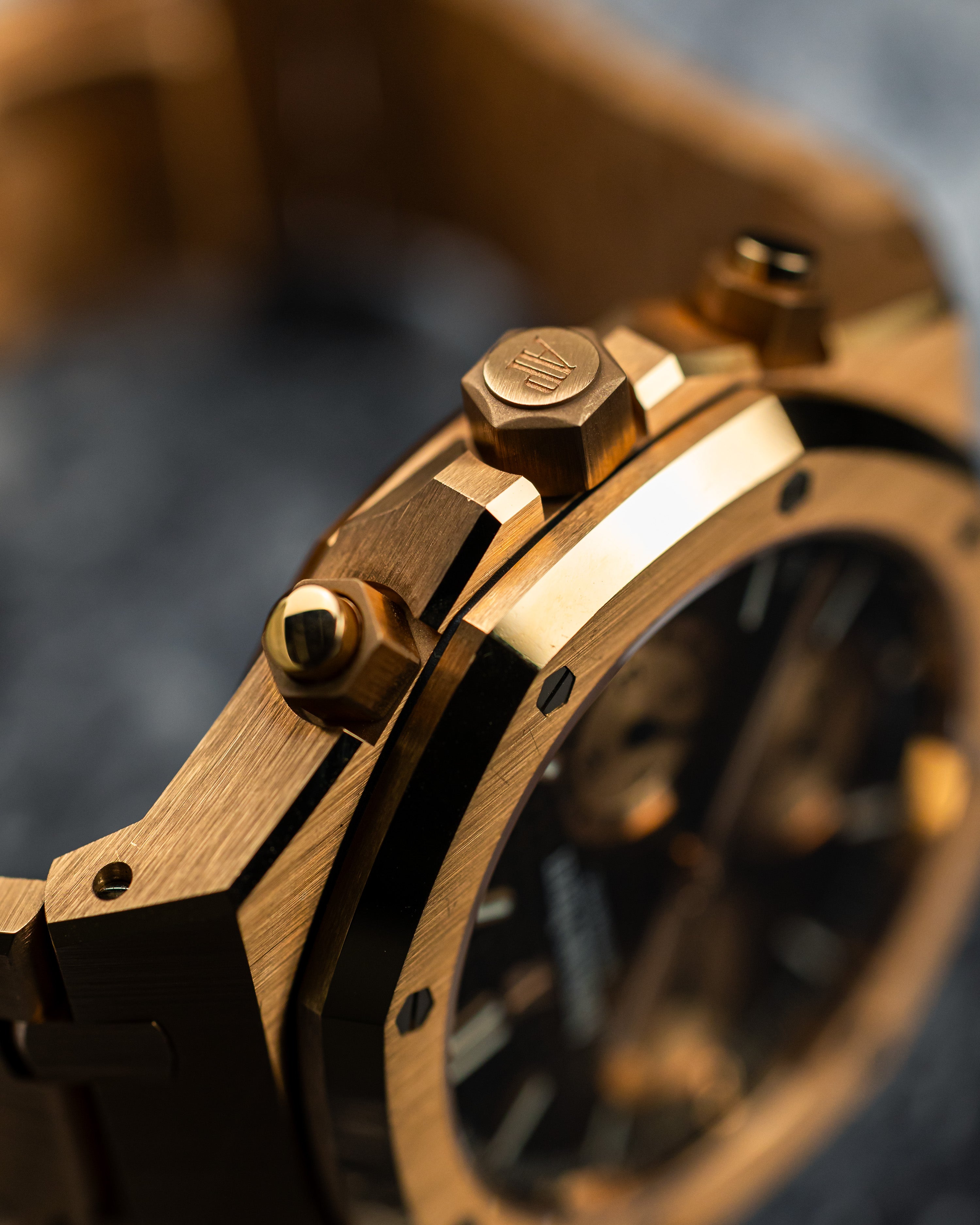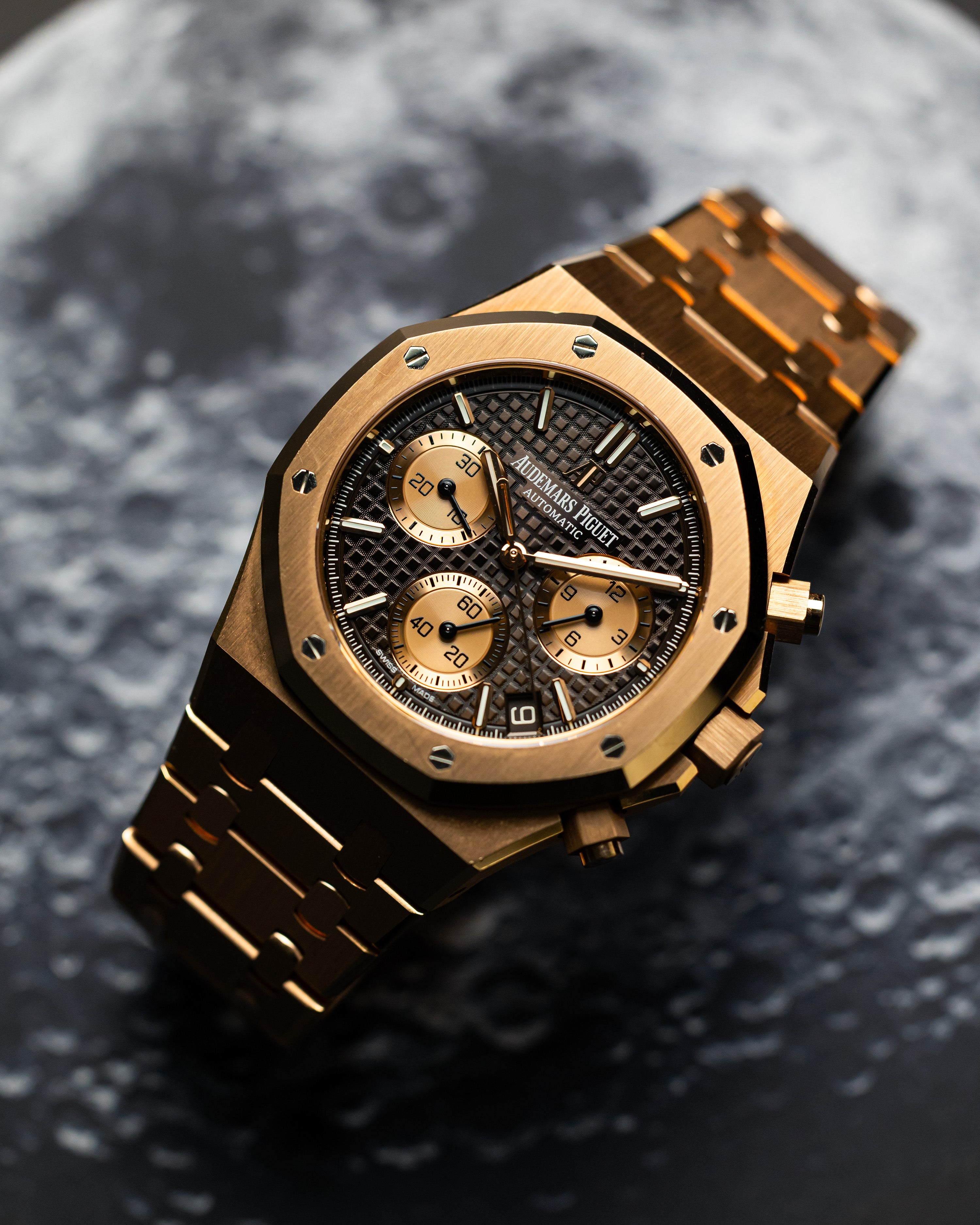 Upgraded with the new in-house chronograph movement in 2021, precisely designed to fit the case, a date wheel at the edge of the dial and an open caseback, revealing the impeccable finishing of the new movement. Encased in solid 18k pink gold complemented by the chocolate dial, pink gold subdials creates a stunning combination.