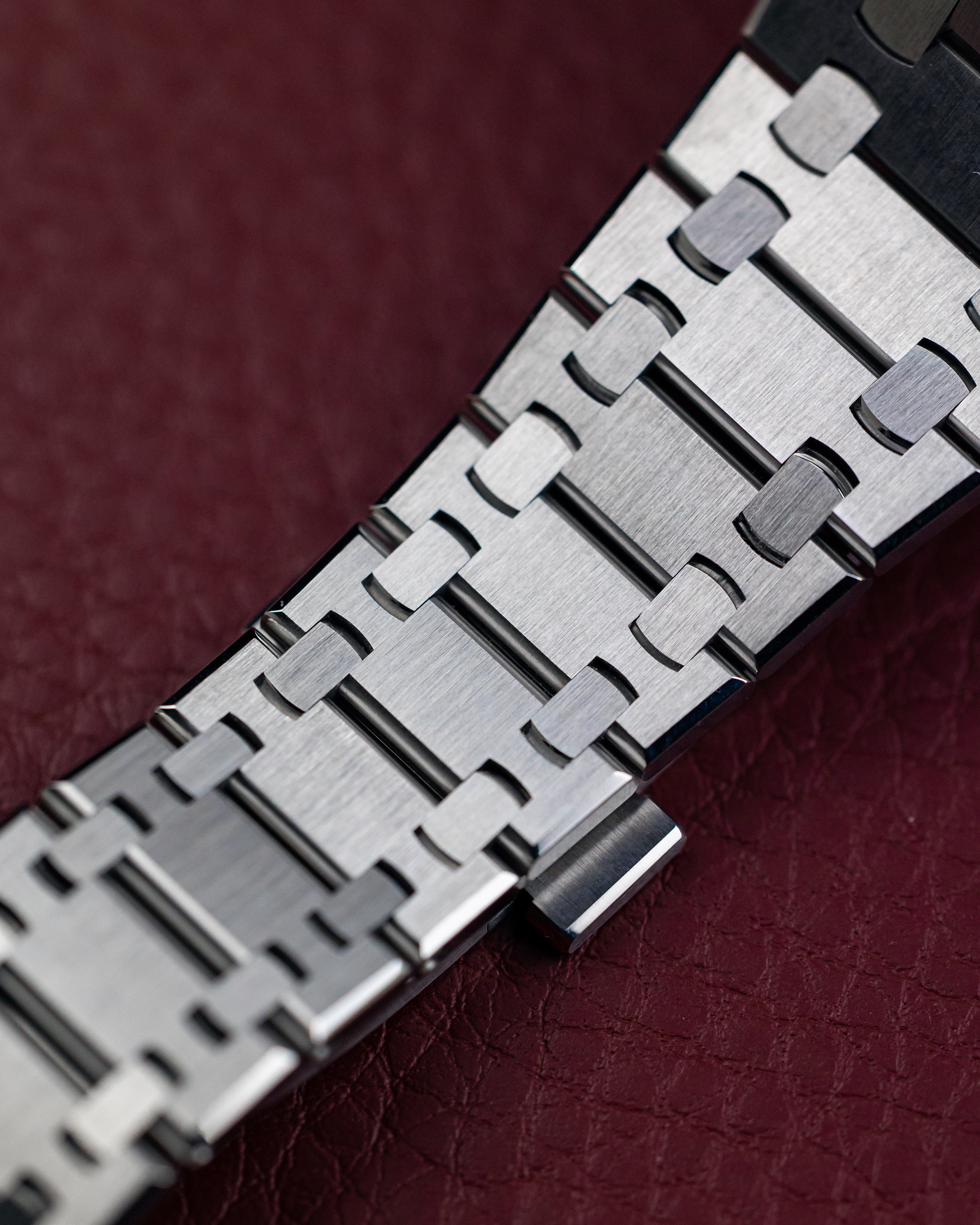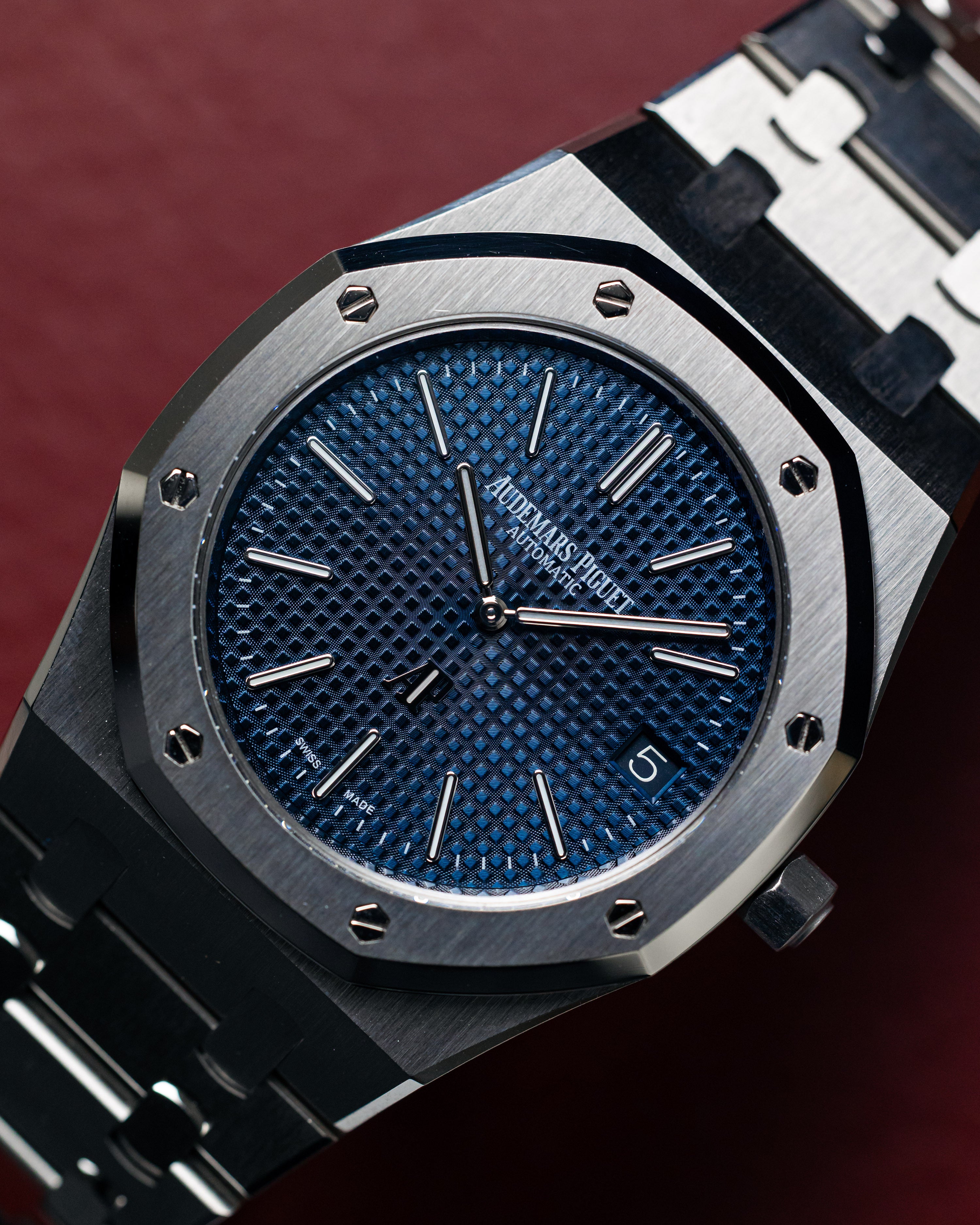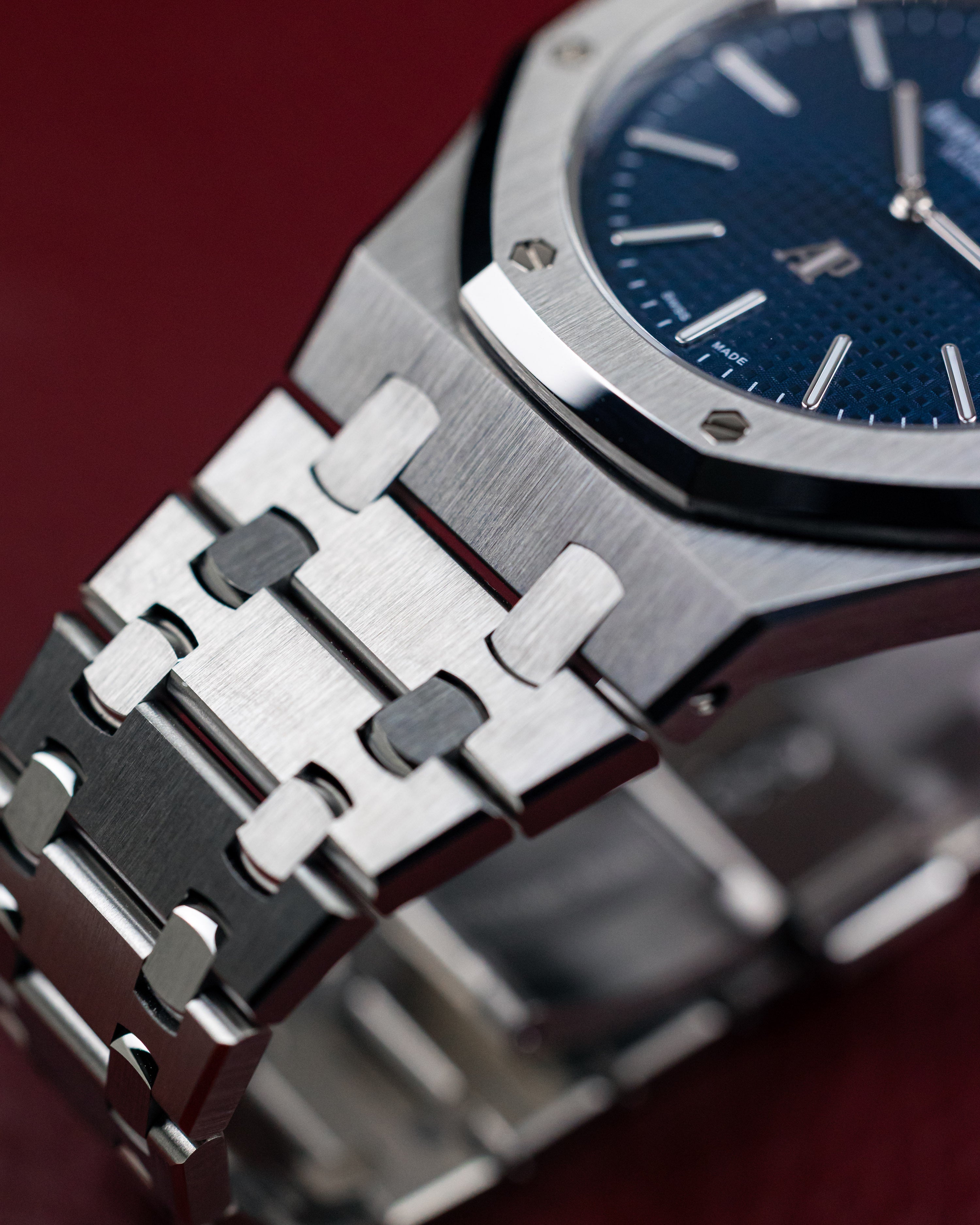 Featuring the final updates to the much loved 15202 series of Royal Oak models by AP, this example features the iconic blue “Méga Tapisserie” dial and retains the original Cal. 2121 movement as the original 1972 Royal Oak. With its mesmerising bracelet, this is a great example to own for years to come.