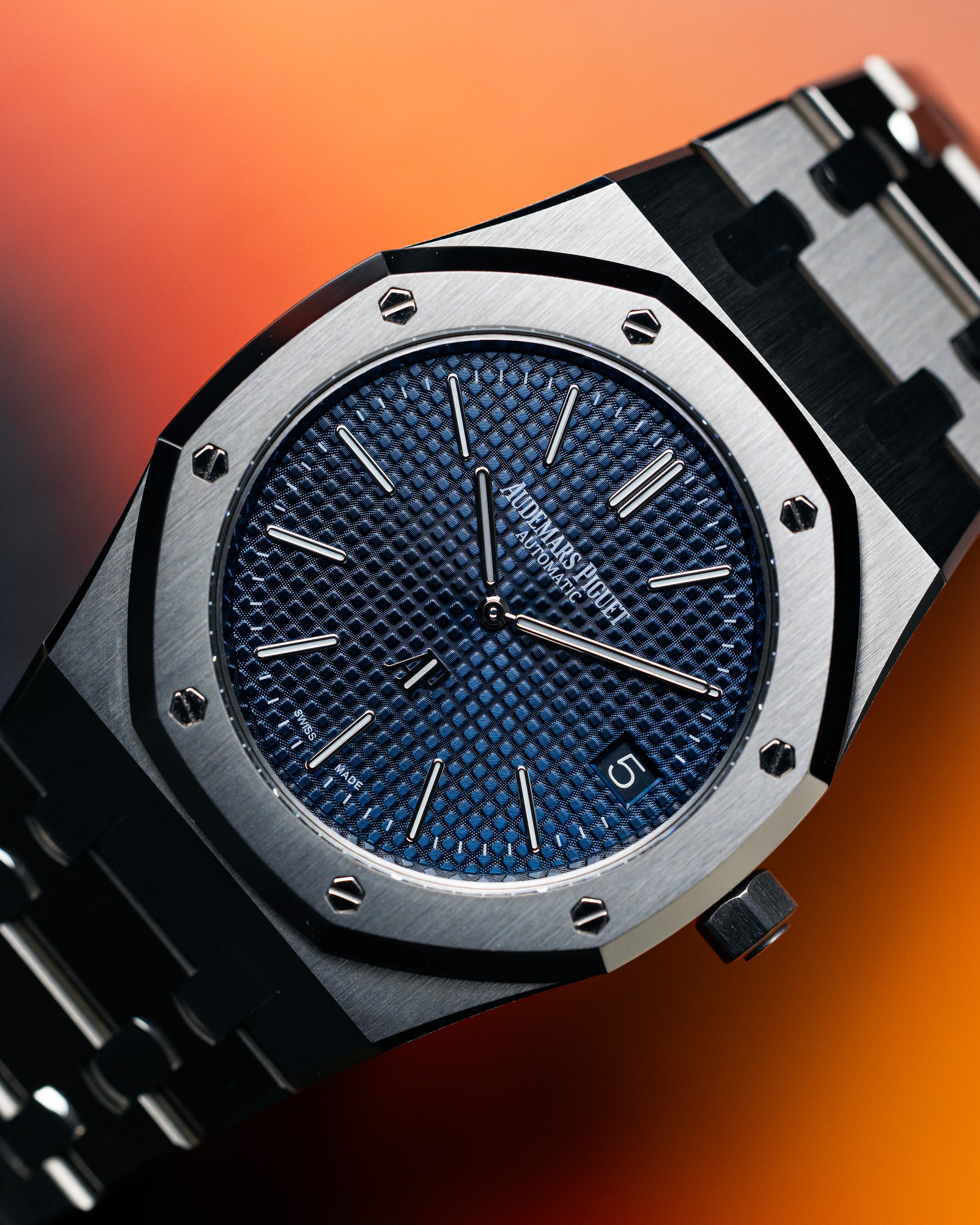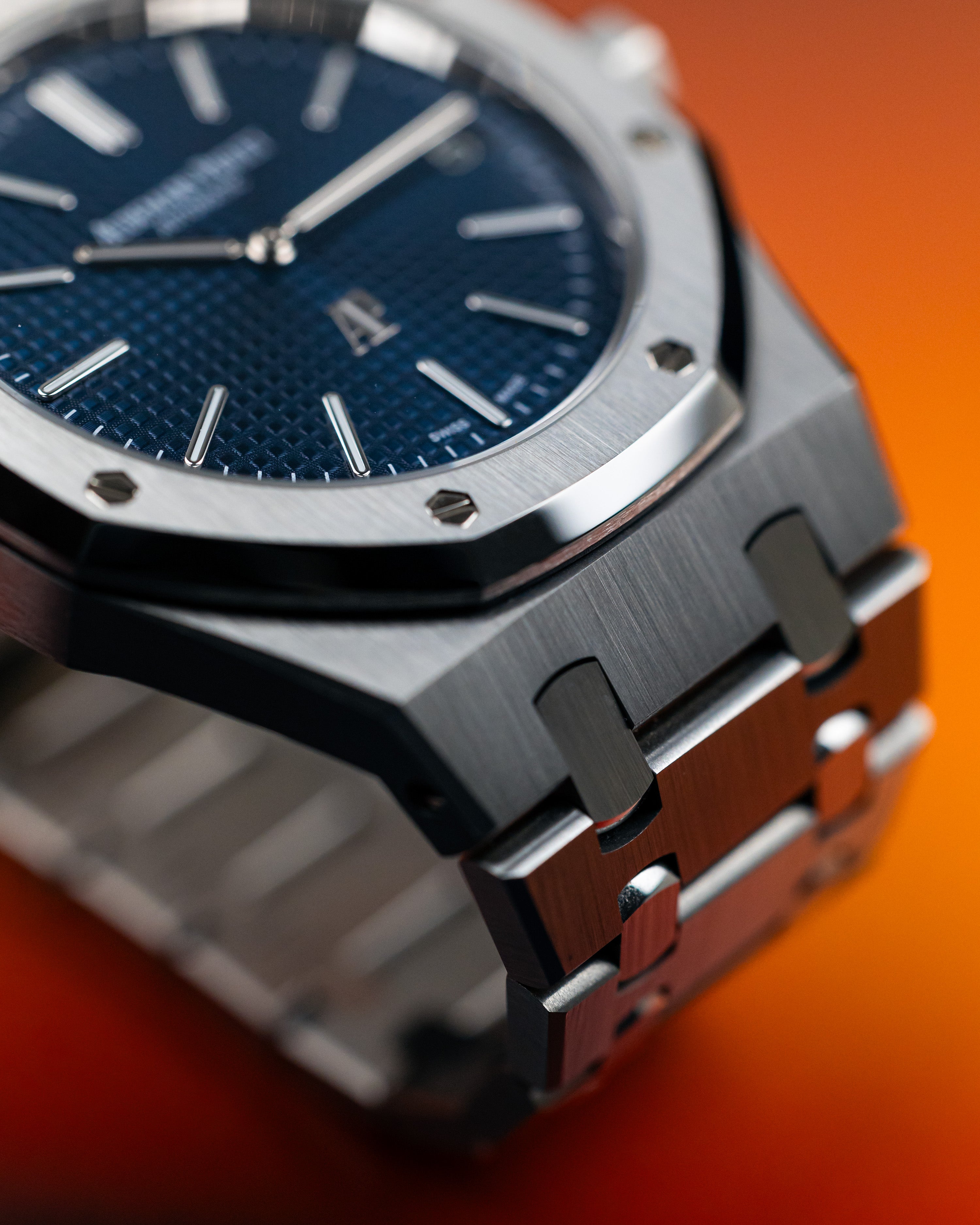 Staying true to the original Royal Oak, the 15202ST retained its slim profile and exceptional comfort on the wrist. As a 2021 model, it stands among the last production run before its discontinuation that same year. It features the iconic blue ‘Petite Tapisserie’ dial, paired with the stunning bracelet that catches and reflects light like no other steel watch.
