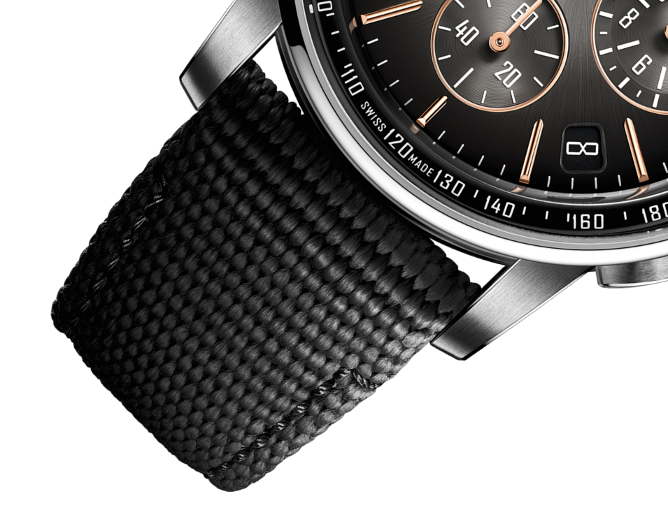 Black rubber-coated strap with 18-carat white gold pin buckle.