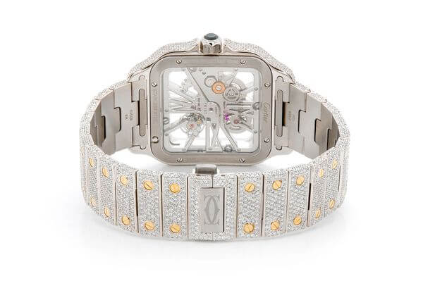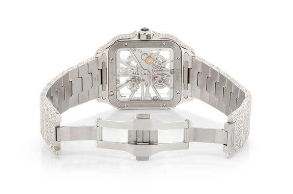 CARTIER SKELETON WATCH ICED OUT 40MM TWO TONE STEEL VVS MOISSANITE