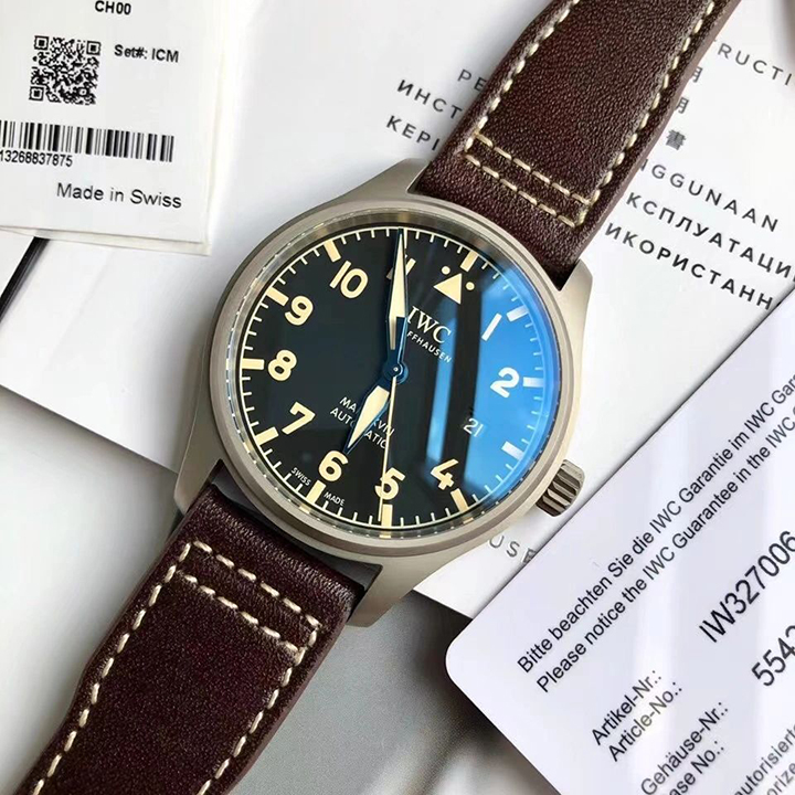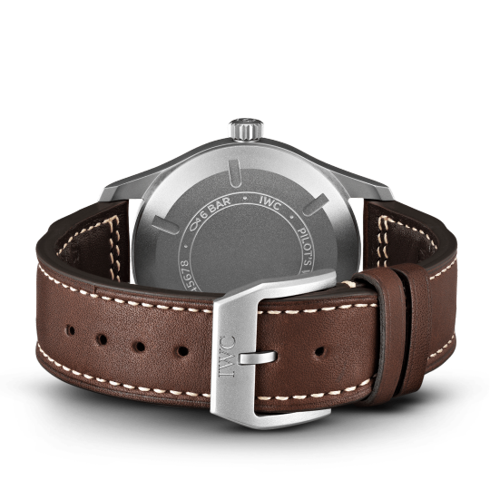 Titanium case, Automatic, self-winding, Diameter 40.0 mm, Black dial with luminescence, Brown calfskin strap, Strap width 20.0 mm.
