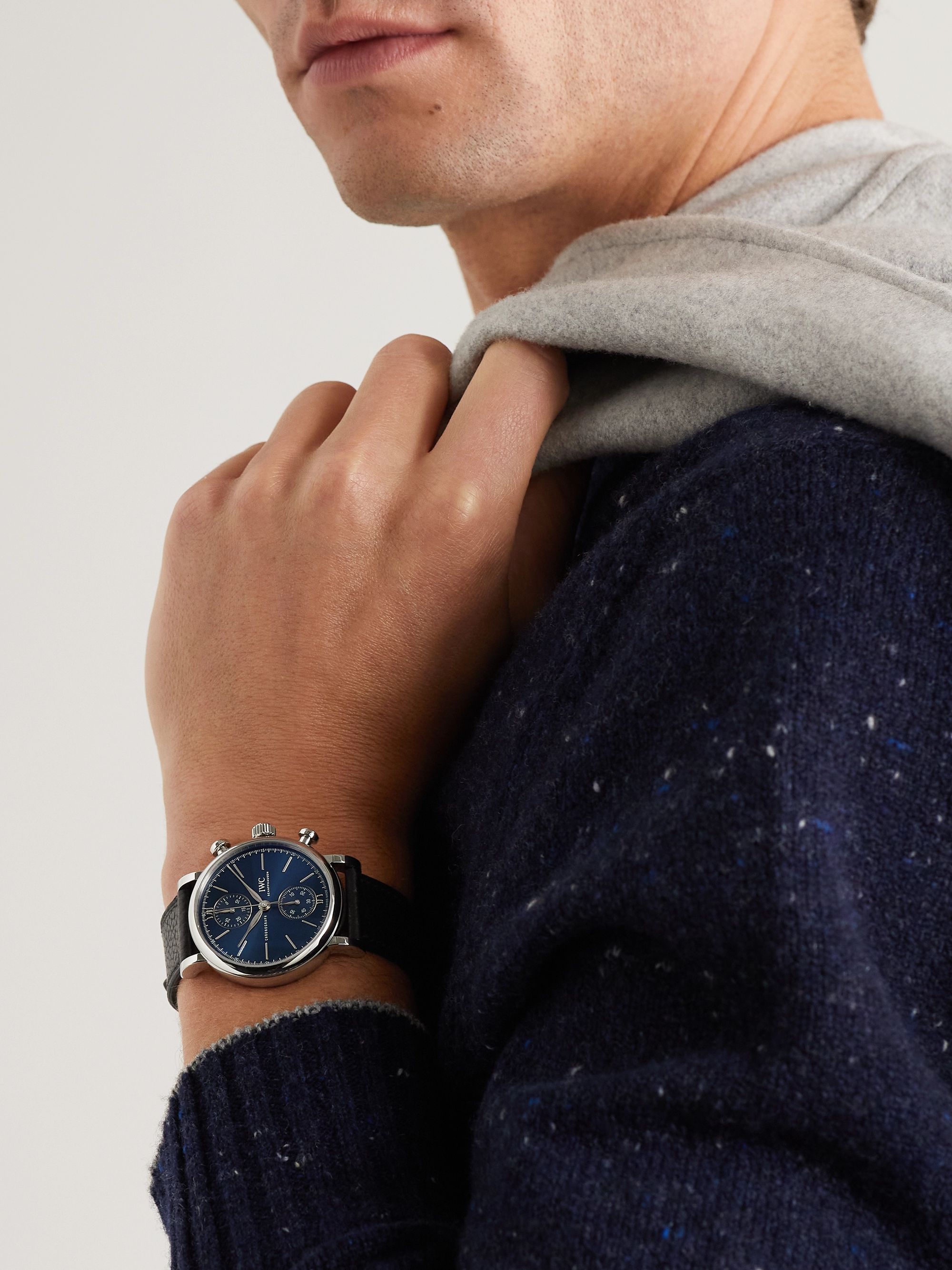 Stainless steel case, Automatic, self-winding, Diameter 39.0 mm, Black calfskin strap, Strap width 20.0 mm.