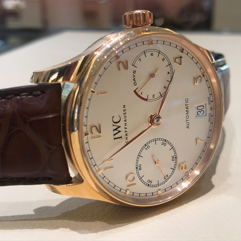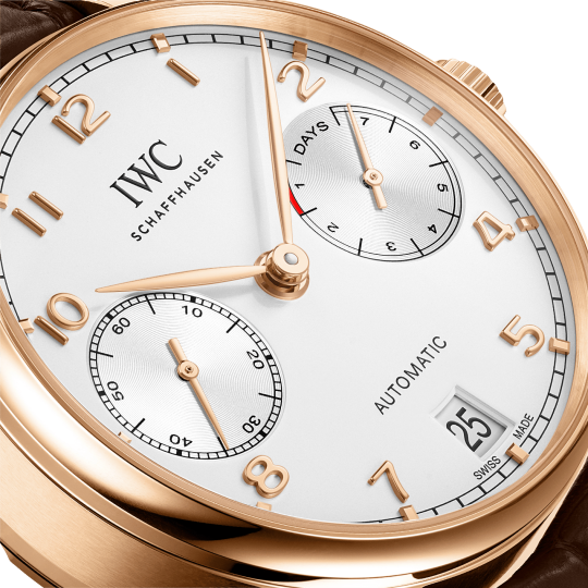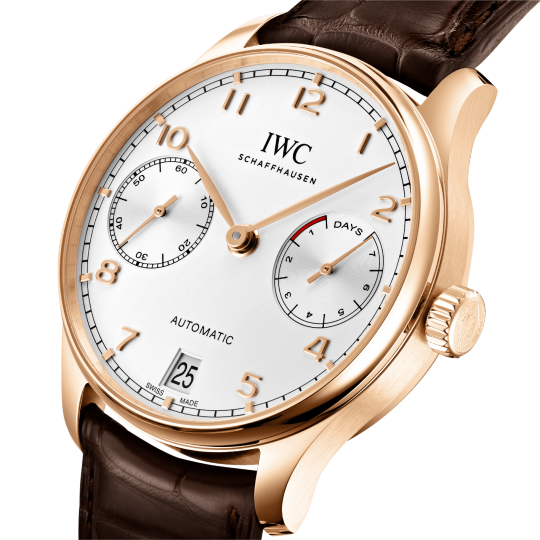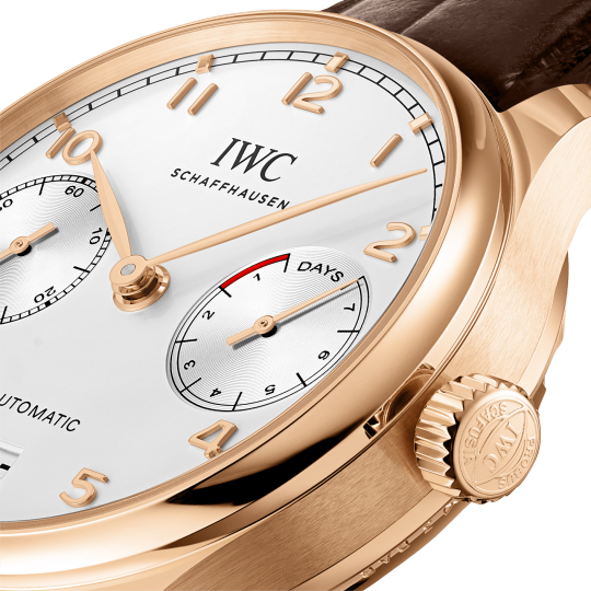 This elegant timekeeping companion from IWC Schaffhausen in 18ct 5N rose gold belongs to the popular Portugieser collection.