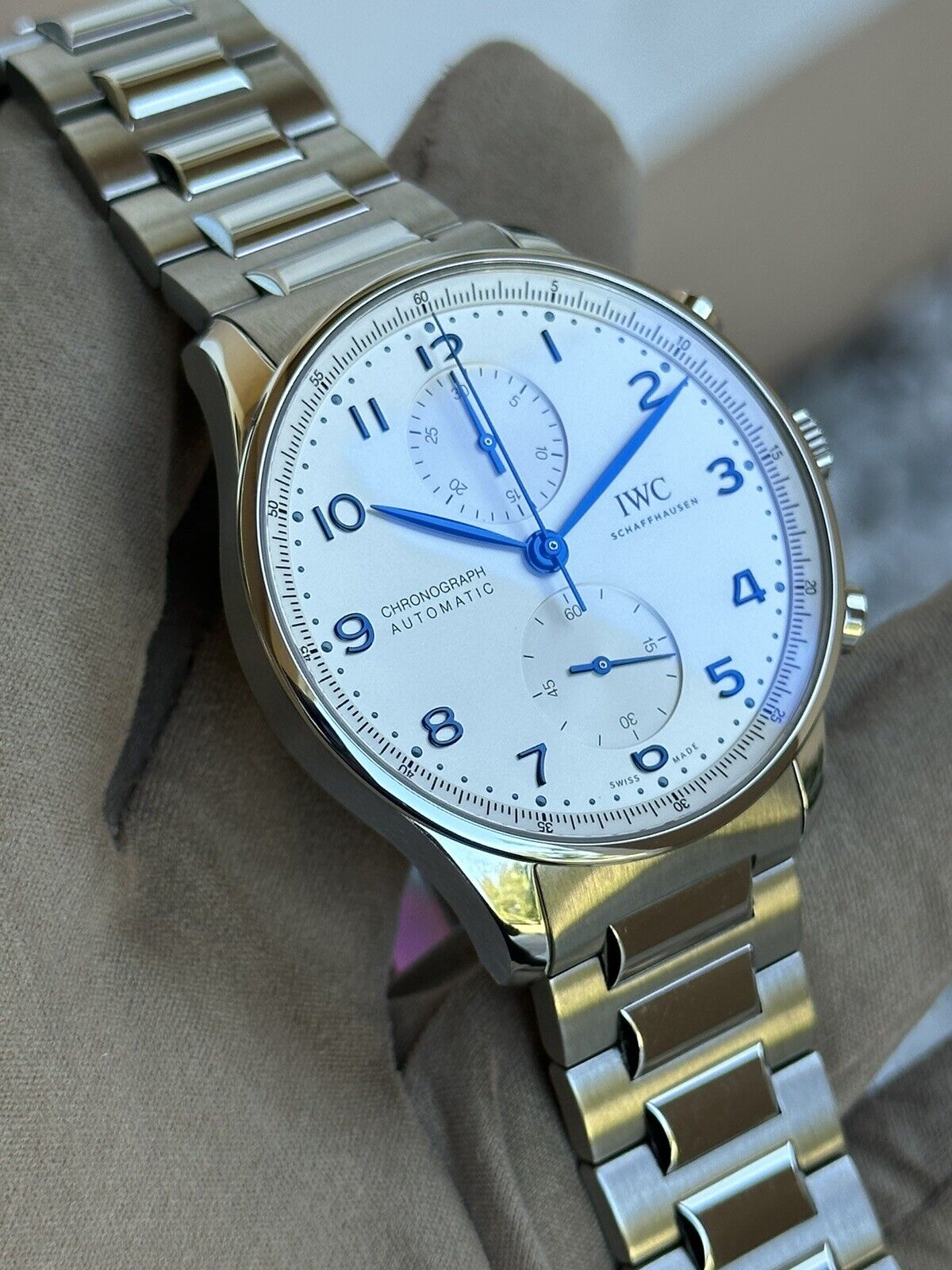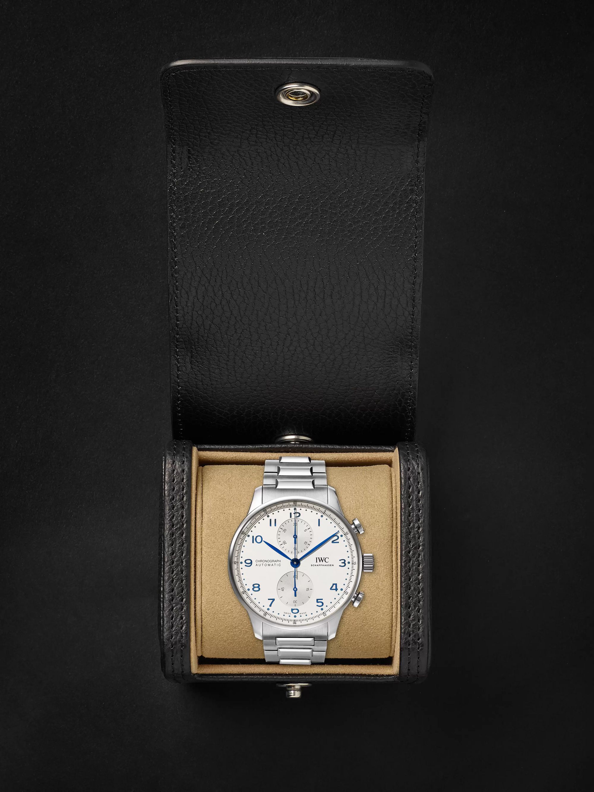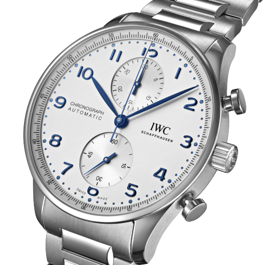 Inheriting the resolute and sporty style introduced by IWC Schaffhausen more than two decades ago, this IWC Portugieser men's chronograph is now available for the first time with a stainless steel bracelet for a more refined look suitable for formal attire.