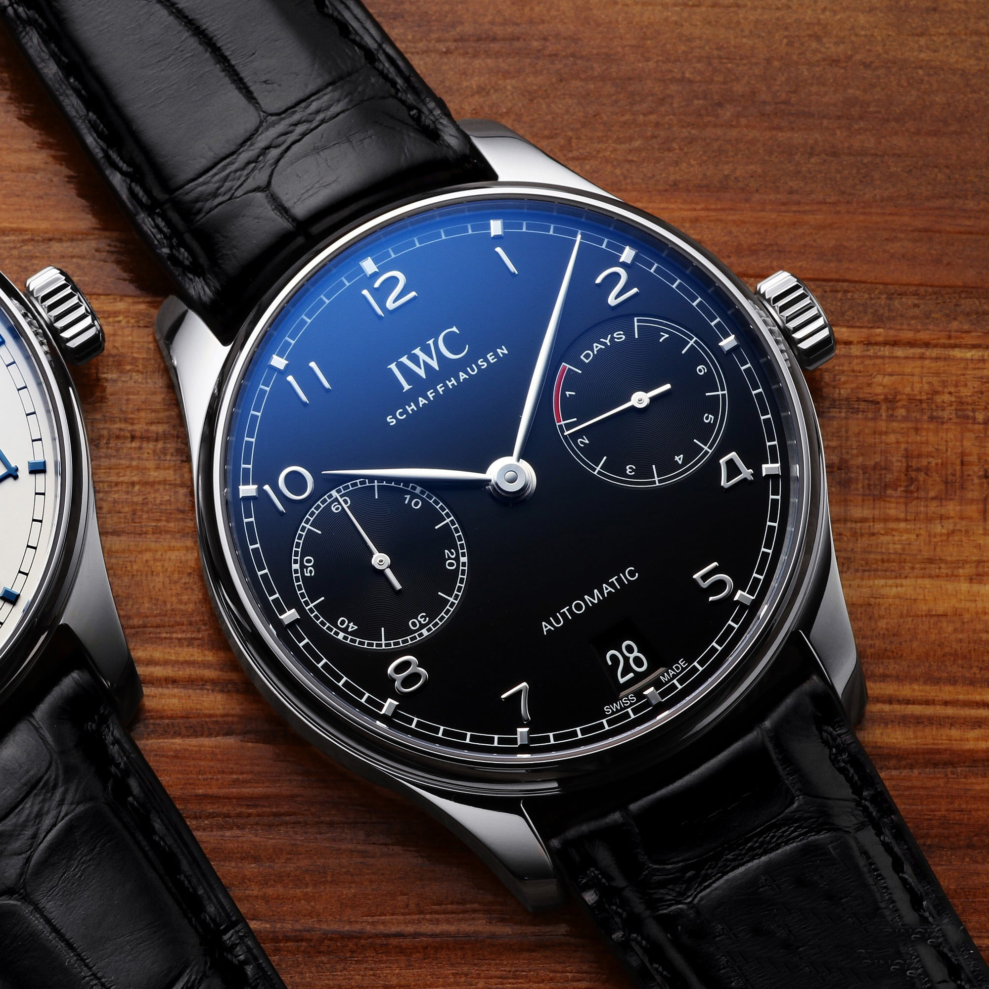 Stainless steel case, Automatic, self-winding, Diameter 42.3 mm, Black alligator leather strap, Strap width 22.0 mm.