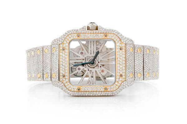 CARTIER SKELETON WATCH ICED OUT 40MM TWO TONE STEEL VVS MOISSANITE