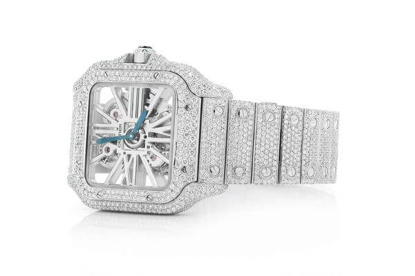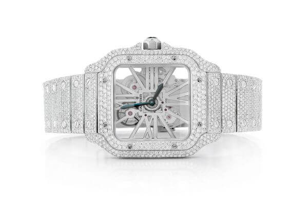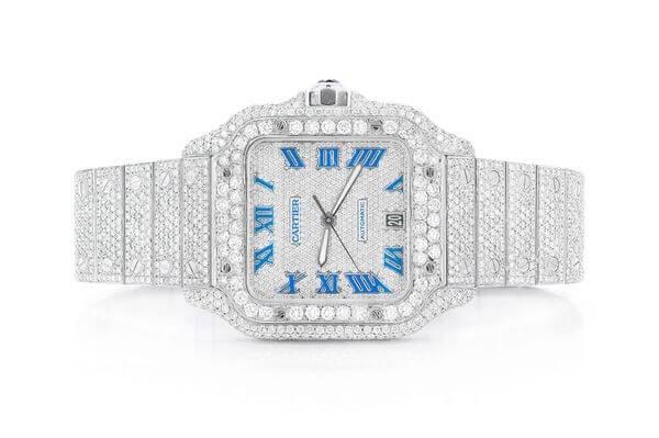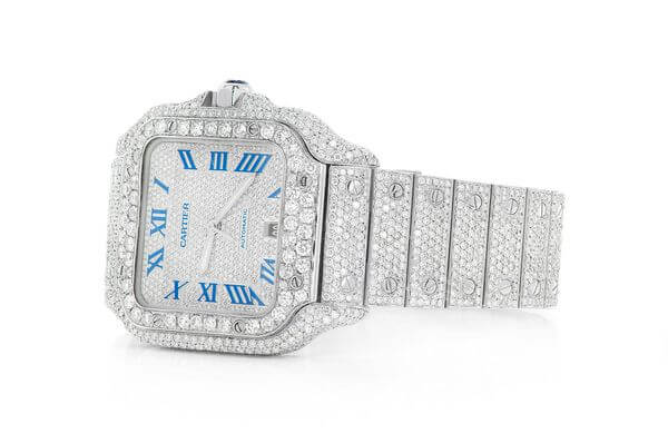 CARTIER SANTOS WATCH ICED OUT 100 XL FULL VVS MOISSANITE HEBREW DIAL