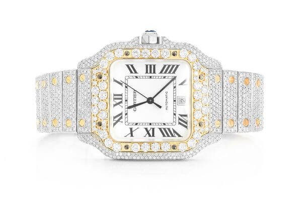 CARTIER WATCH BUST DOWN SANTOS DE 40MM TWO TONE FULL ICED VVS MOISSANITE ROMAN DIAL