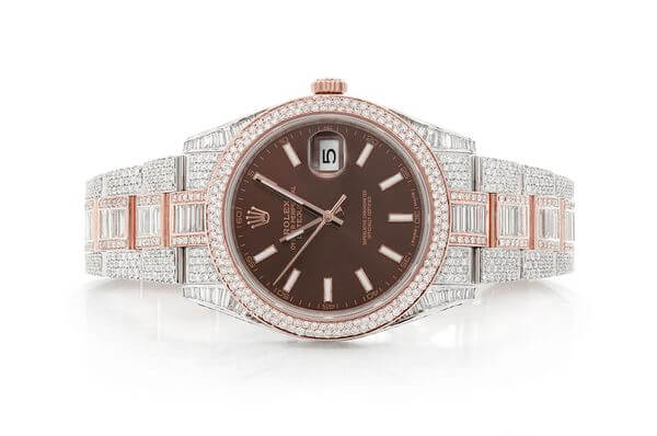 ROLEX ICED OUT WATCH 41MM TWO TONE WITH BROWN DIAL STAINLESS STEEL MOISSANITE 20.00CT