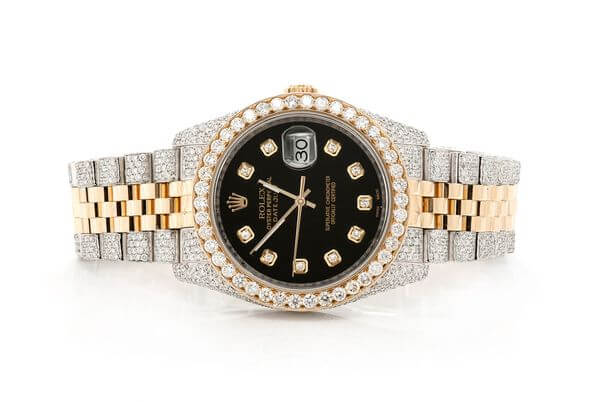 ROLEX WITH DIAMONDS 36MM TWO-TONE BLACK DIAL MOISSANITE 14.60CT