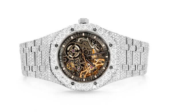 ICED OUT AP WATCH 41MM SKELETON SILVER VVS MOISSANITE 24CT