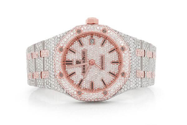 AP ICED OUT ROYAL OAK 41MM ROSE GOLD FULL MOISSANITE WATCH