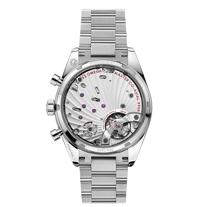 The watch is presented on a matching bracelet with OMEGA’s patented comfort release adjustment system, and is driven by the manual-winding OMEGA Co-Axial Master Chronometer Calibre 9906.