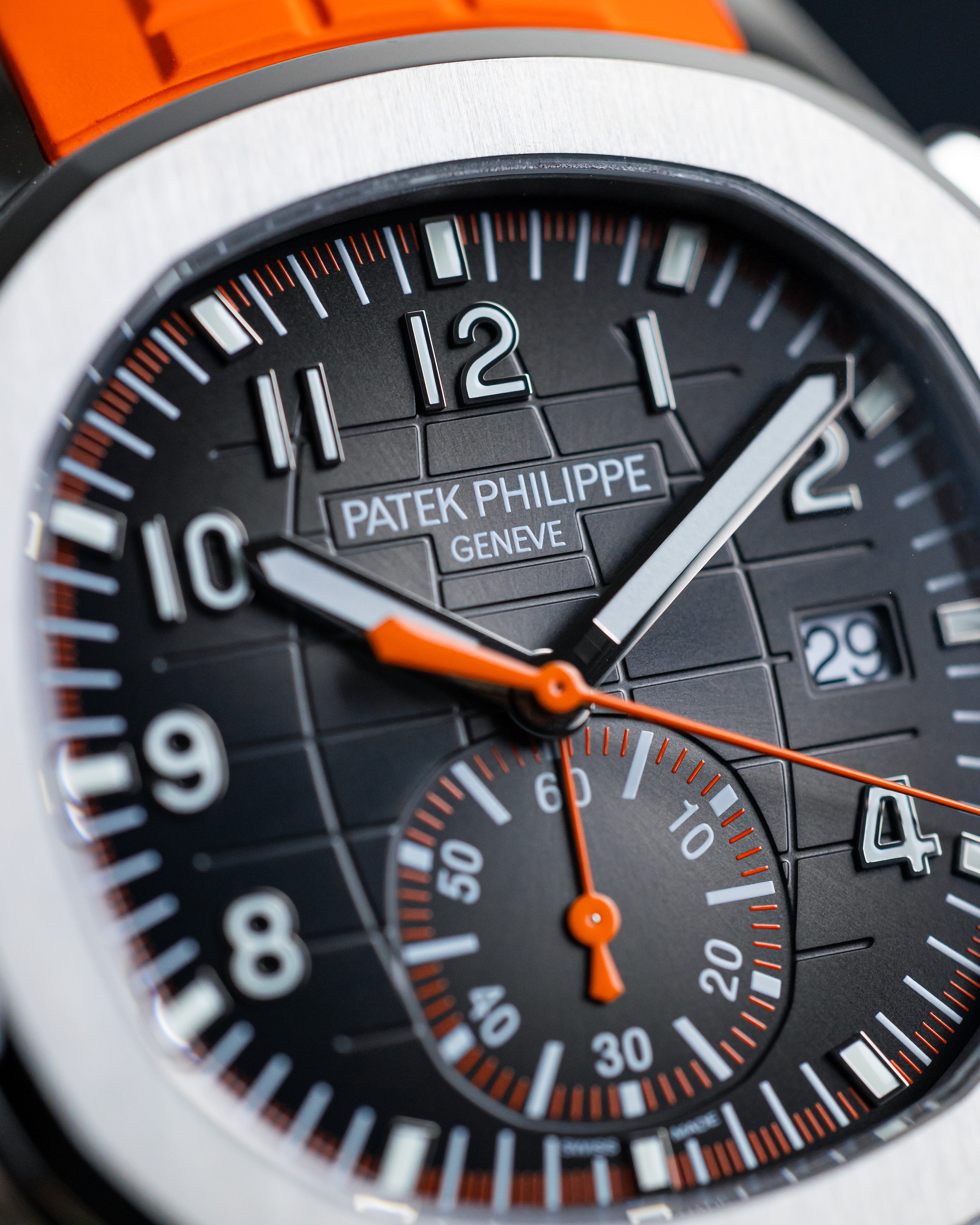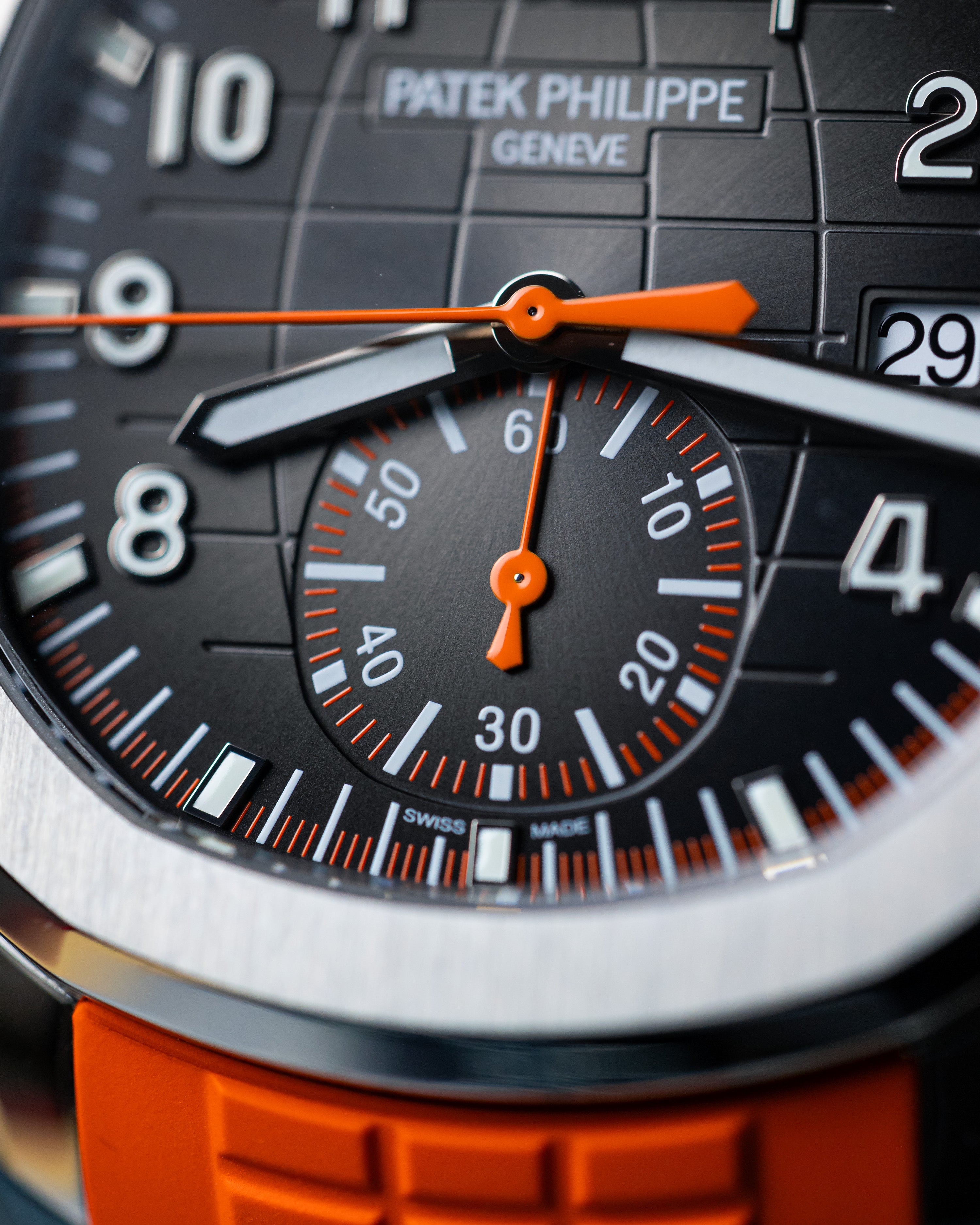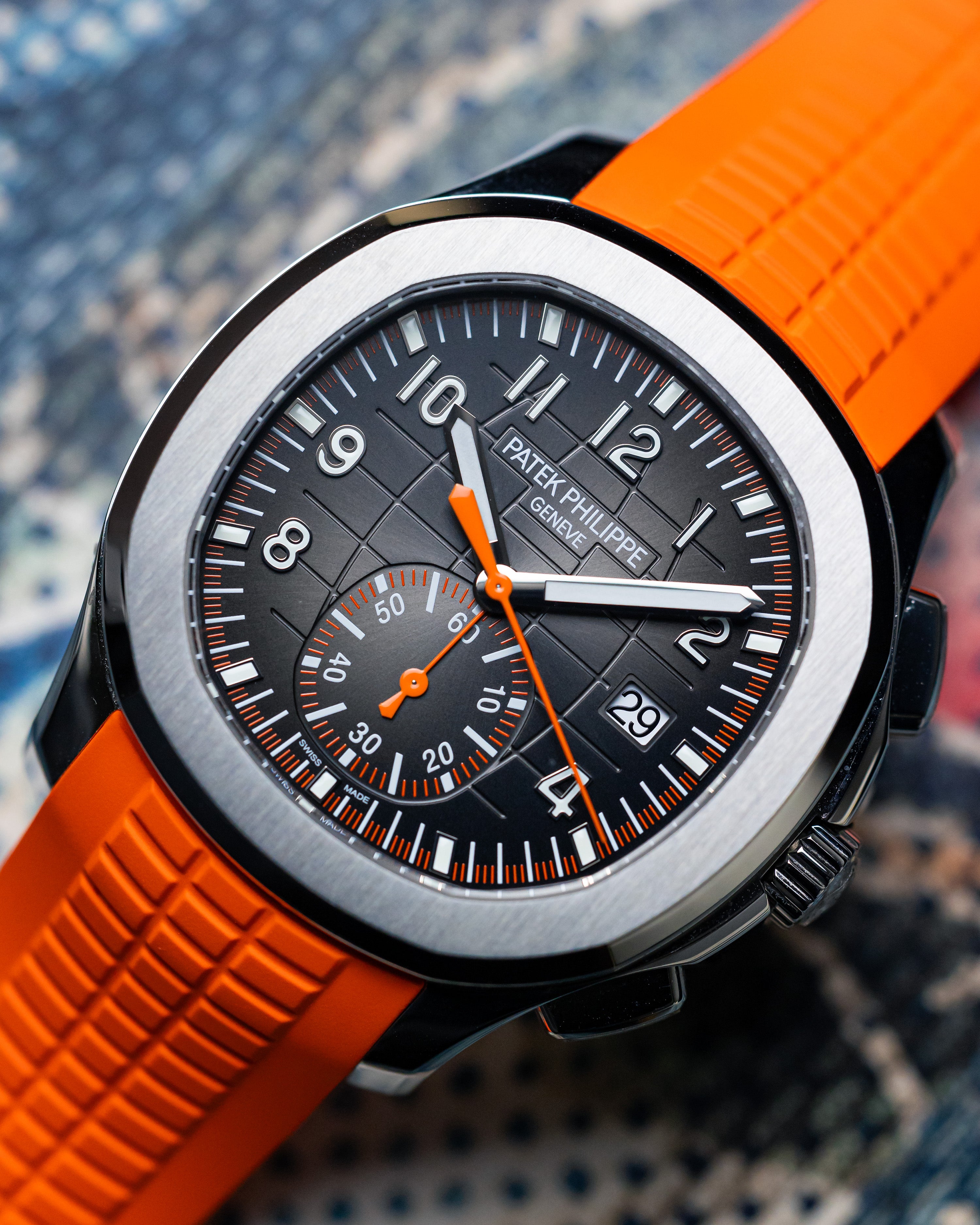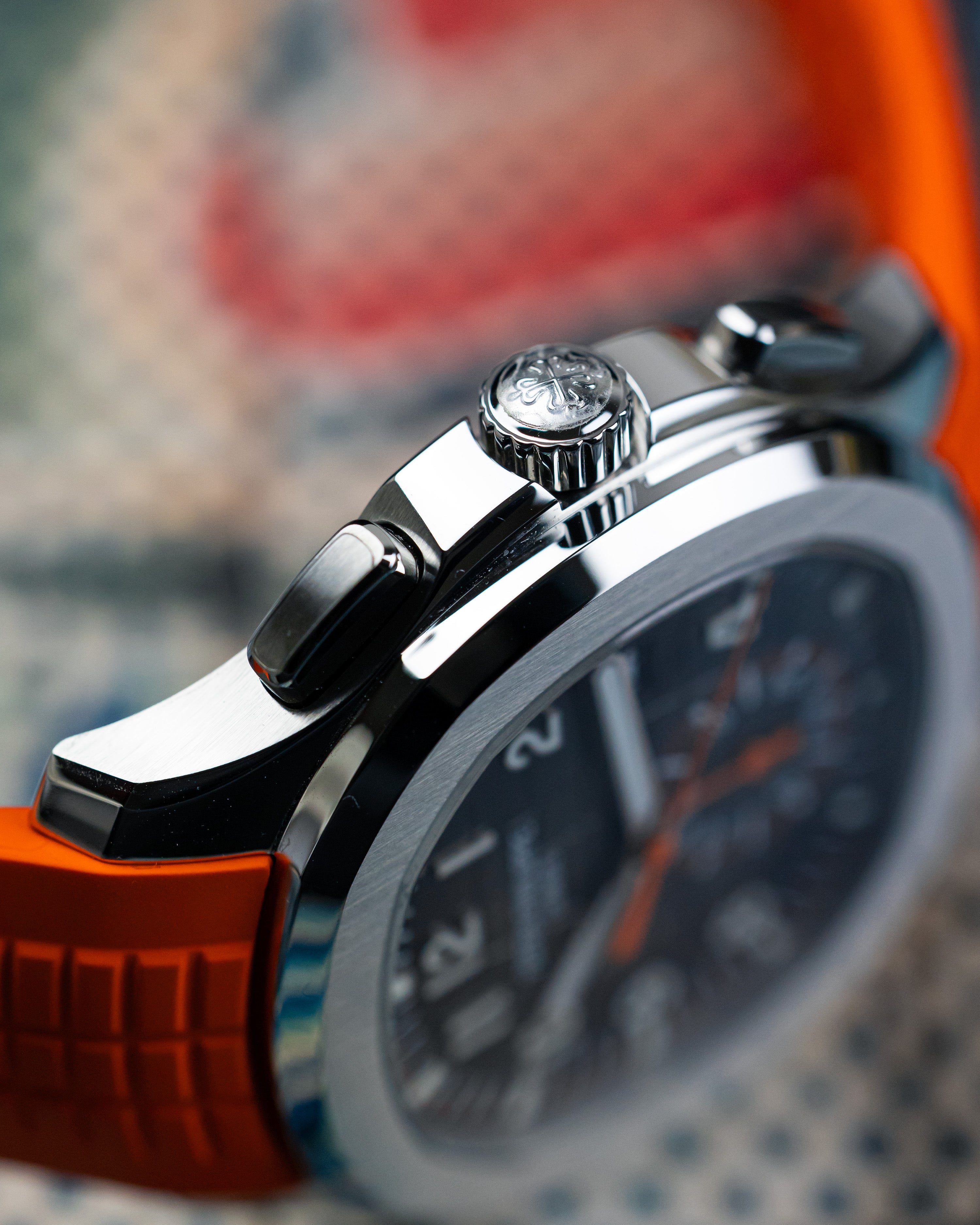 Back in 2018, Patek Philippe added its first chronograph to the Aquanaut lineup, mixing sporty function with sleek style. Equipped with a self-winding flyback movement for spot-on timing, it also features bold orange accents that make it pop without losing its classy vibe.