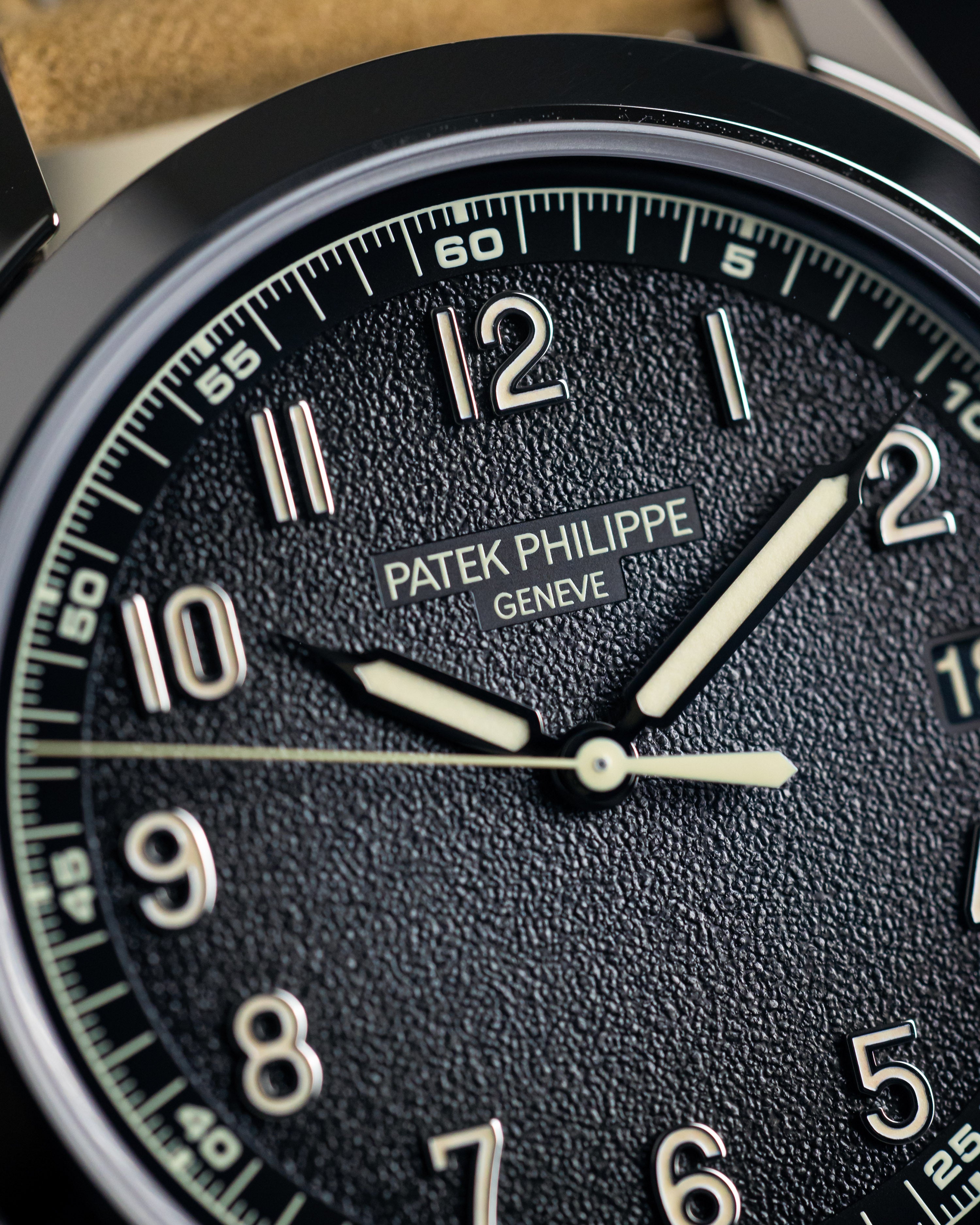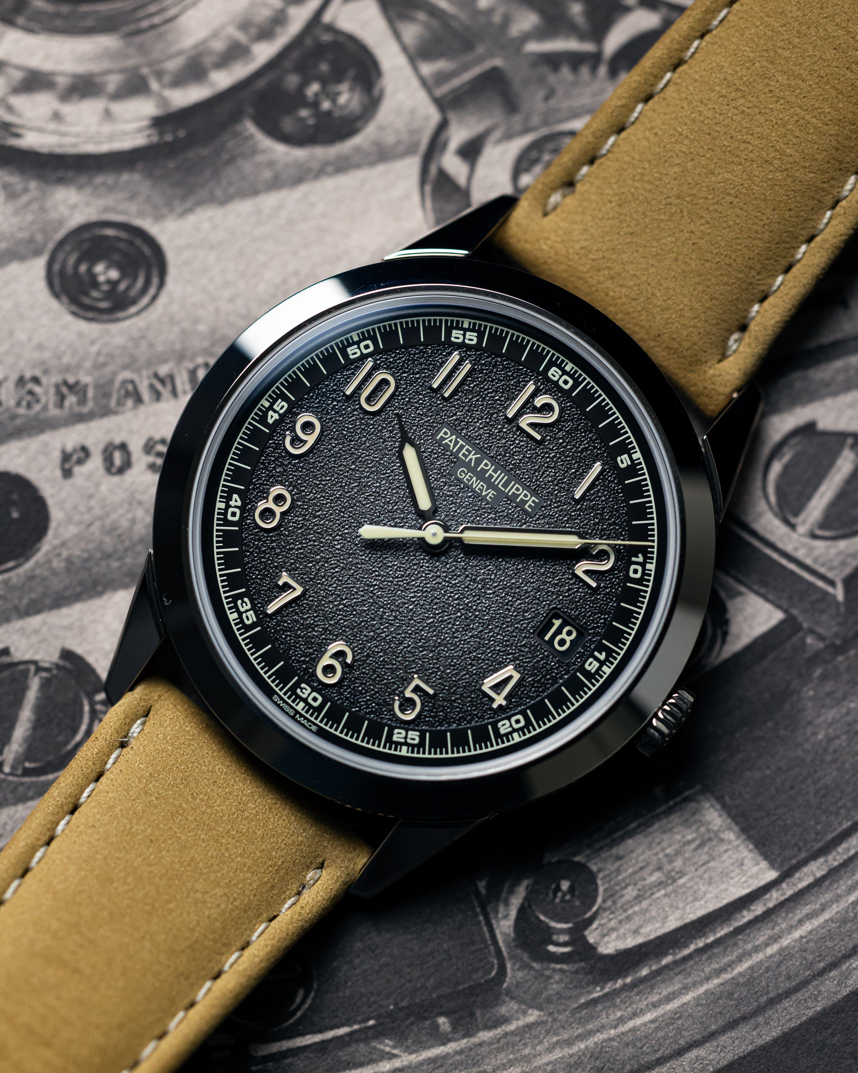 In 2022, Patek Philippe unveiled an entirely new design within the classic Calatrava collection, refreshing its aesthetic with a round case that blends contemporary and vintage styles. The textured grey to black dial, complemented by tan accents, enhances the watch's vintage-inspired appeal.