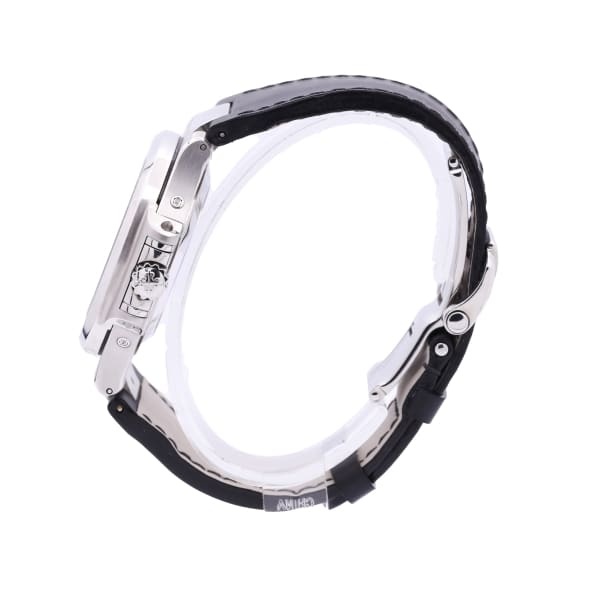 Unworn Patek Philippe Nautilus Annual Calendar, 40.5mm, Stainless Steel Watch. Black Dial with luminous hands and stick hour markers with luminescent fill. Minute markers around the outer rim. Annual calendar complication with day, date, and month is shown in apertures. Date display at the 6 o'clock position. Day of the week and month at the 12 o'clock position. 24-hour and moon phase sub-dial at the 6 o'clock position subdials. The watch dial is protected by a Scratch-resistant sapphire crystal. They have a screw-down crown and transparent sapphire crystal case back. The shape of the watchcase is a Cushion. Fixed silver-tone Stainless Steel bezel. This model has the following features: annual calendar, moon phase, month, date, day, GMT, second-time zone, hour, minute, second. The movement is mechanical self-winding Patek Philippe Caliber 324 S QA LU 24H/303 containing 34 Jewels and has a power reserve of approximately 45 hours. The watch presented on a black crocodile/alligator leather strap with Fold over with a safety release clasp. The water resistance is up to 120m/400ft.