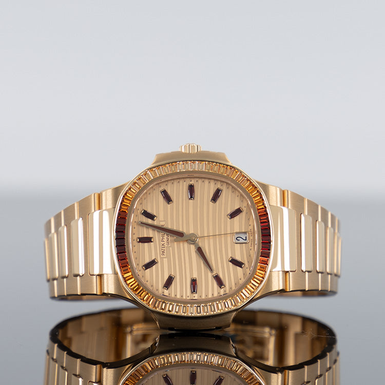 Inside the case, there is the self-winding manufacture caliber 324 S C, whose fine decorations and solid gold central rotor with Patek Philippe seal can be viewed through a sapphire crystal caseback.