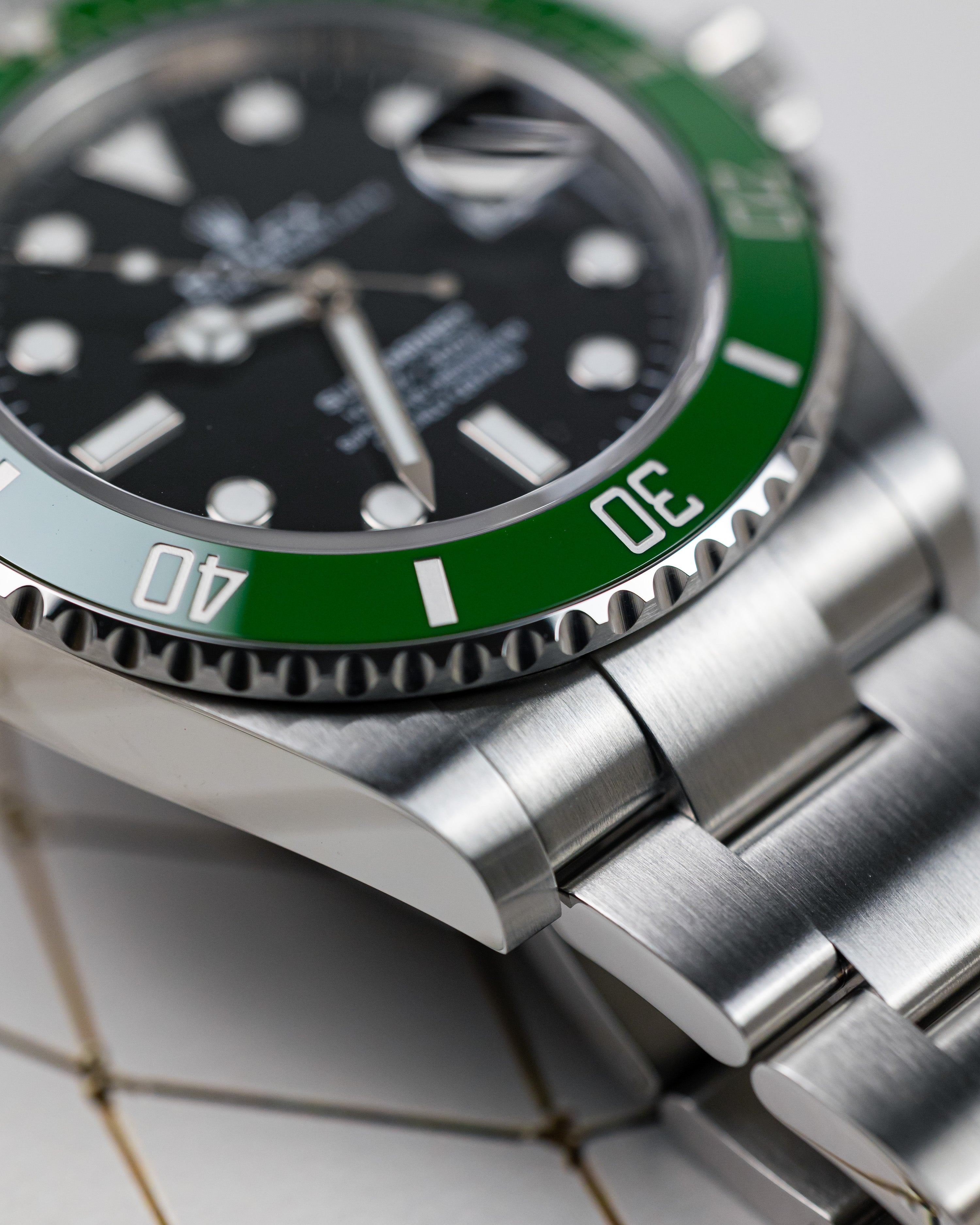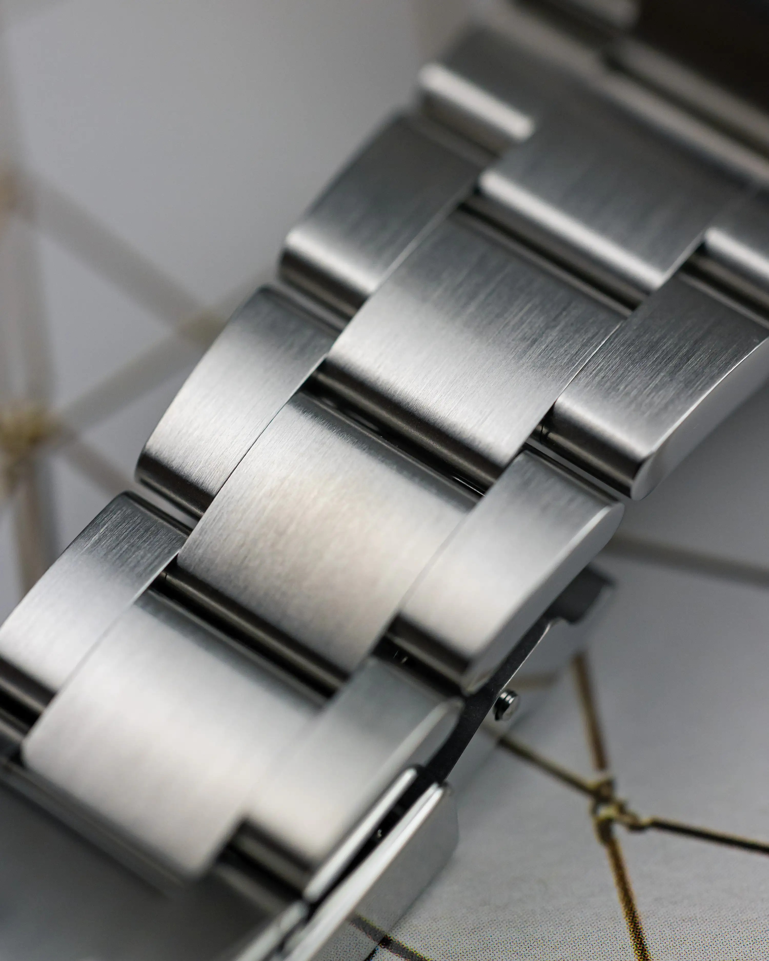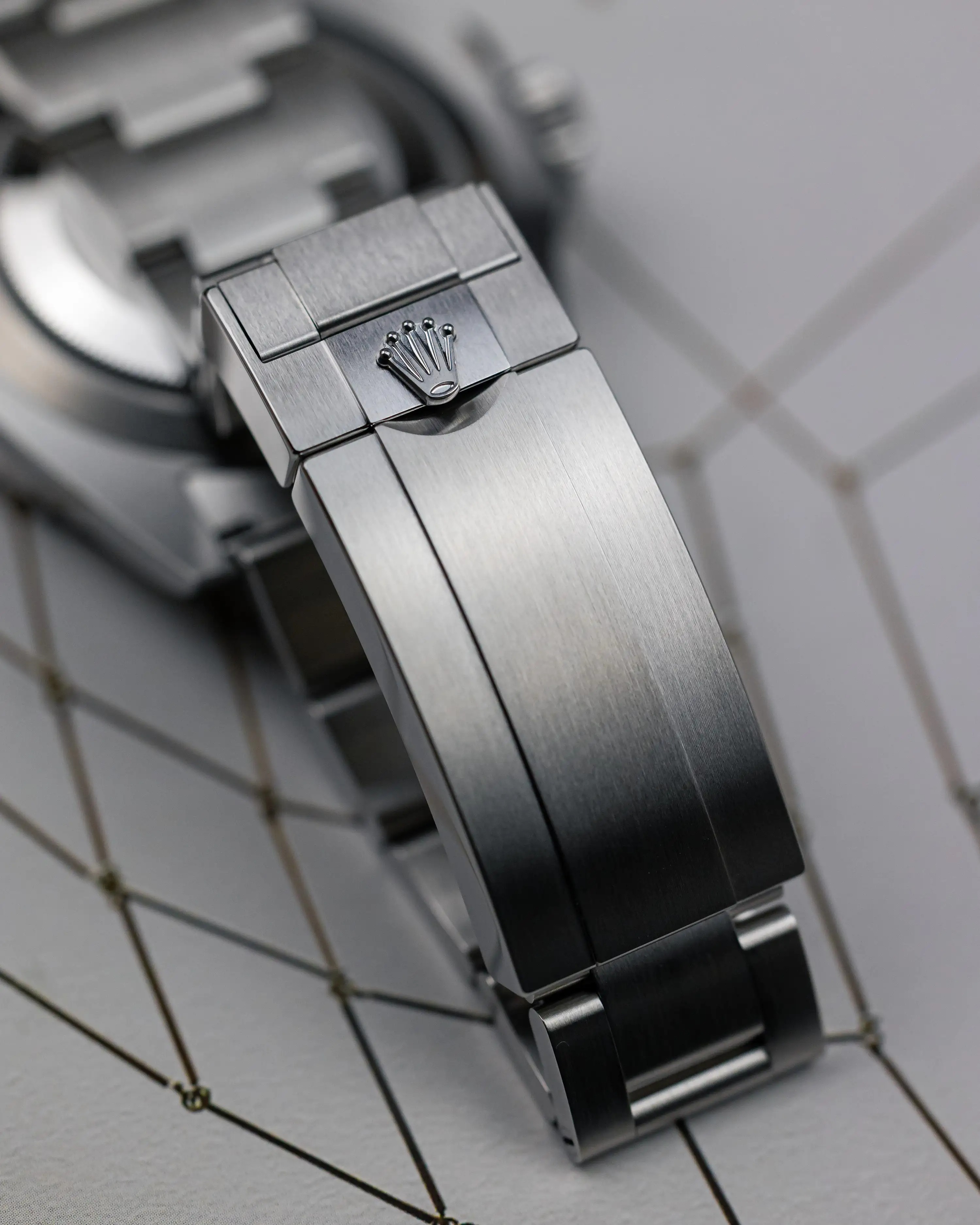 As you fasten the meticulously crafted 904L stainless steel bracelet around your wrist, you’ll appreciate the thoughtfully designed adjustable link and fold clasp, ensuring ultimate comfort and a perfect fit. The black dial, fondly nicknamed the Rolex Kermit, stands out with its bold yet refined stick and dot indices. The silver-tone, Mercedes-logo hands, and the sword and Breguet-style shapes enhance the watch’s aesthetics, ensuring it’s as striking as it is functional.
