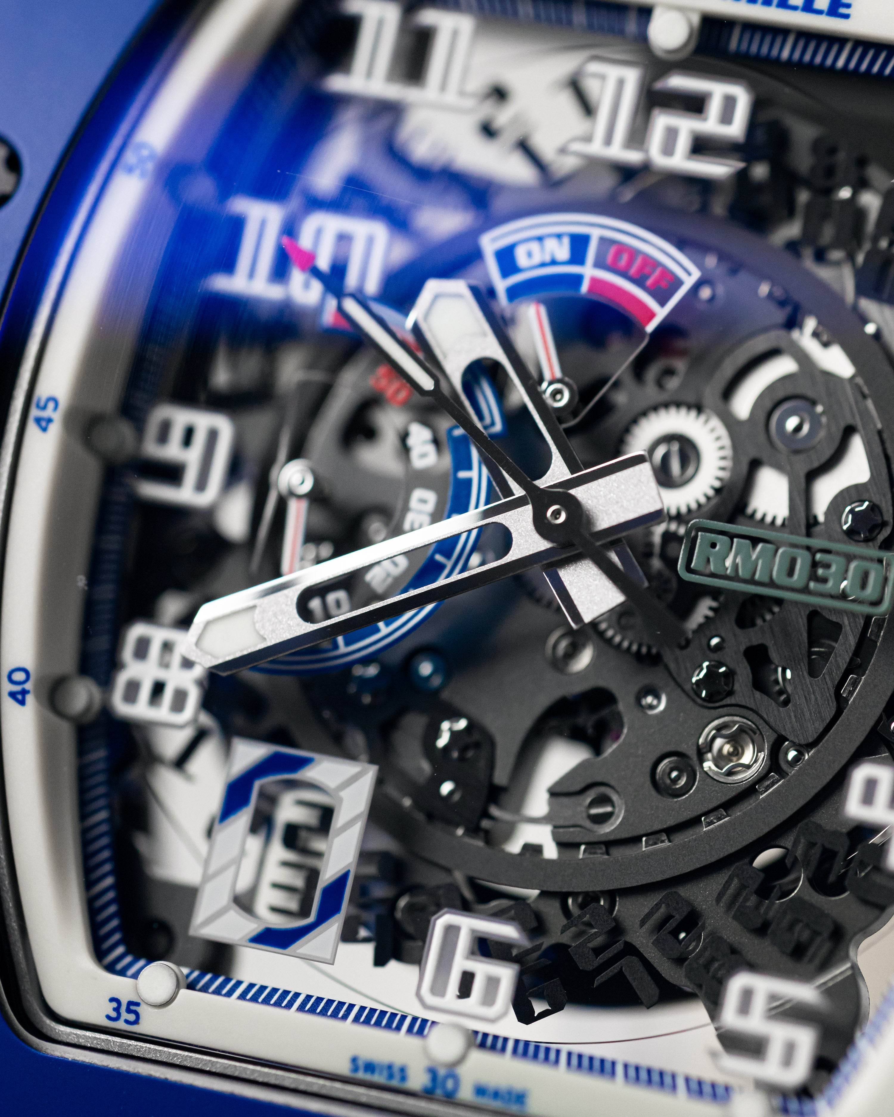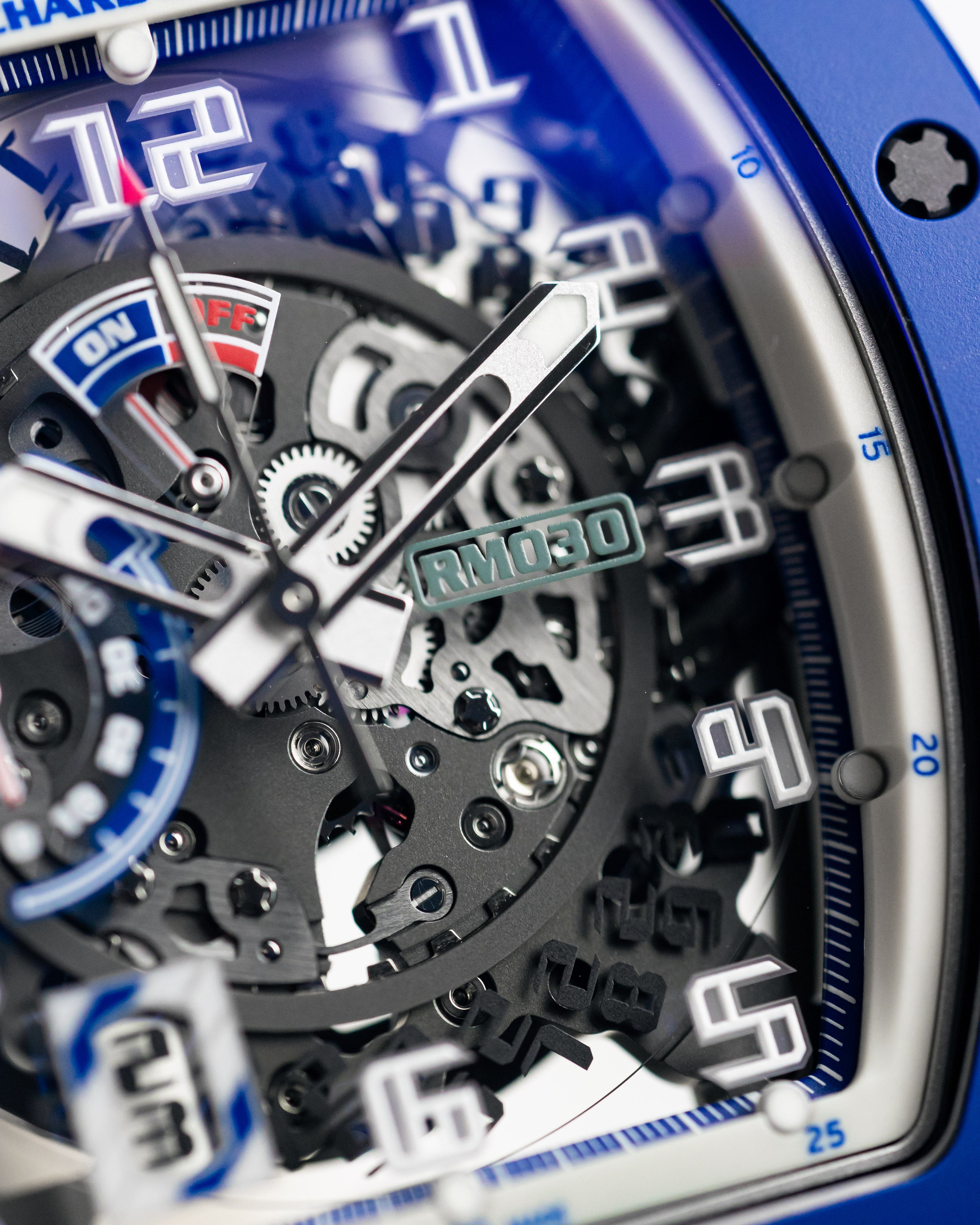 This special edition RM030, limited of 100 pieces, is not only visually striking but not lacking technical ingenuity.