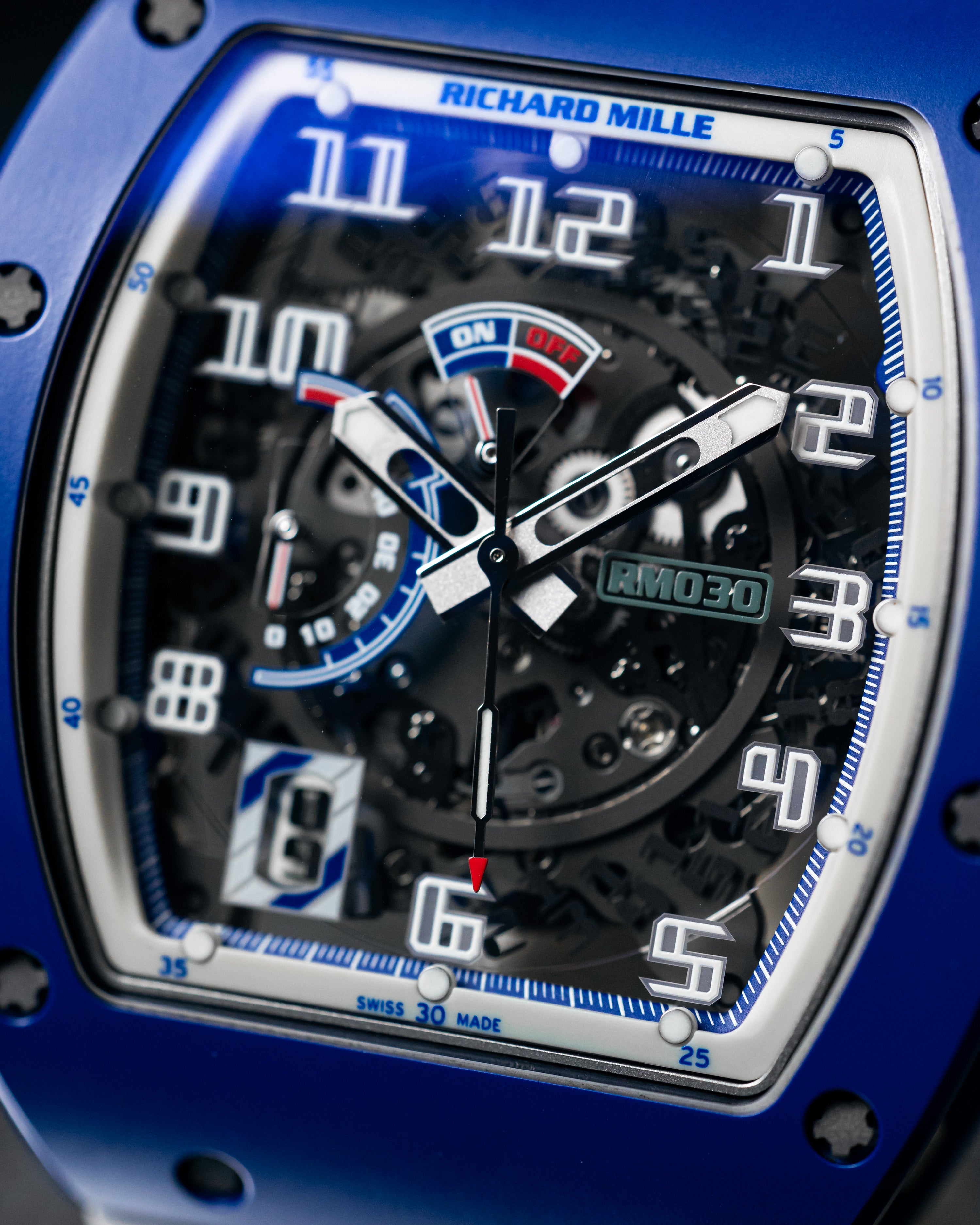 This limited edition RM030, with only 100 pieces available, combines striking aesthetics with exceptional technical craftsmanship.