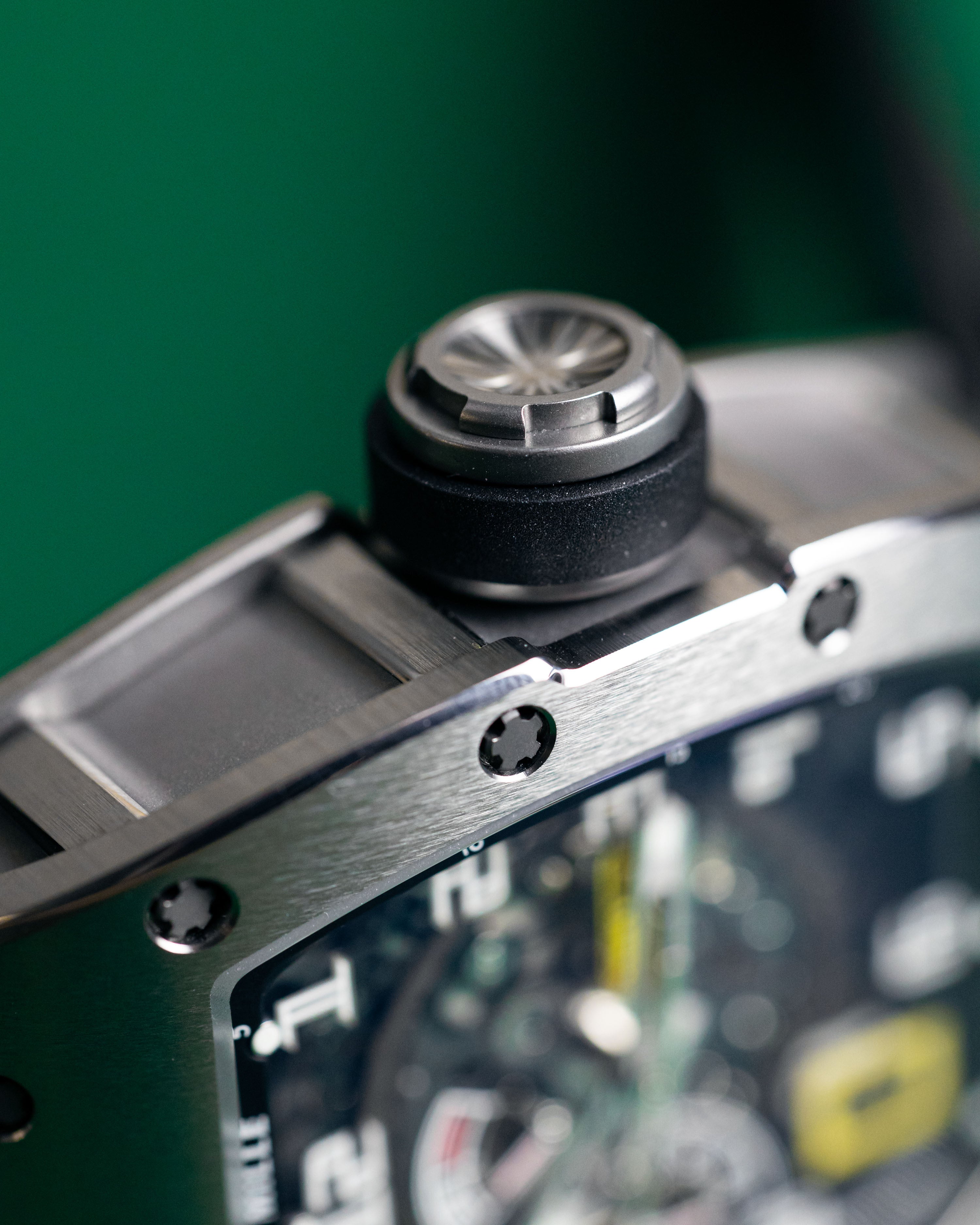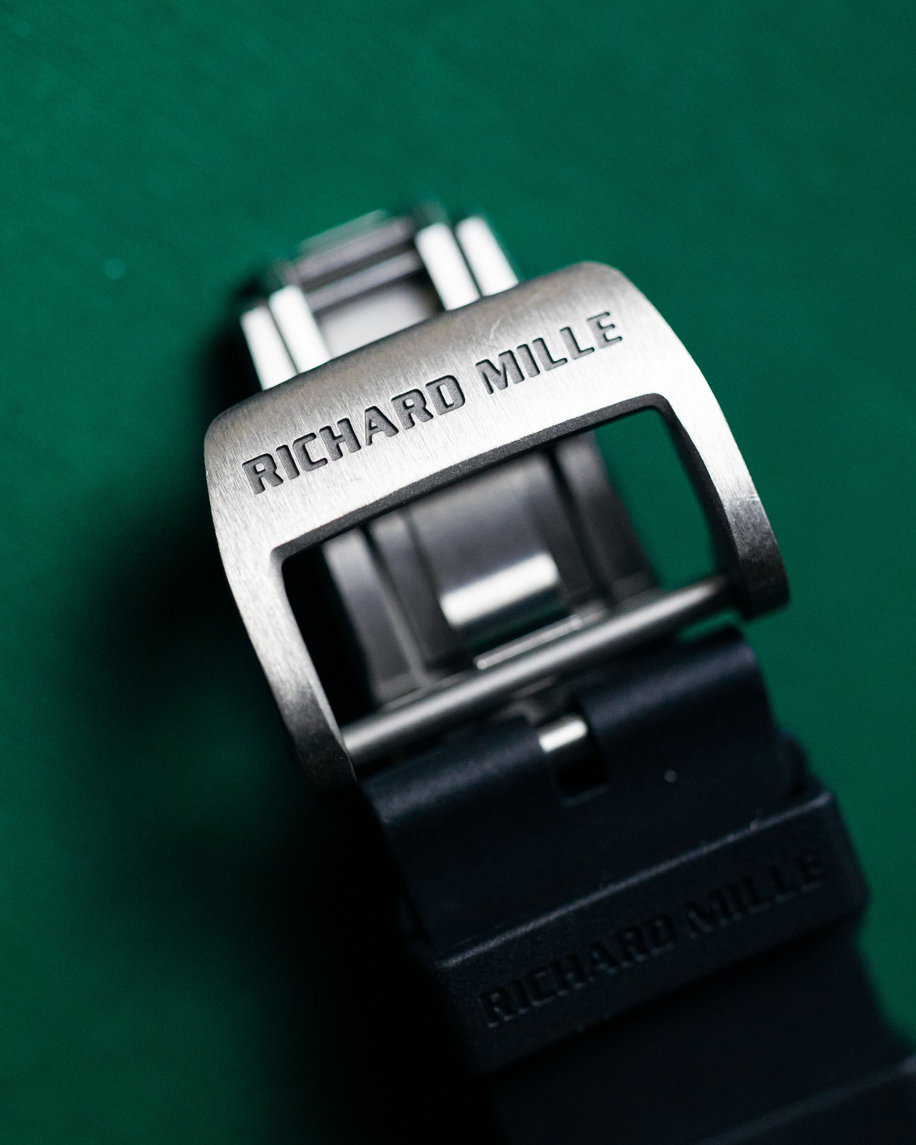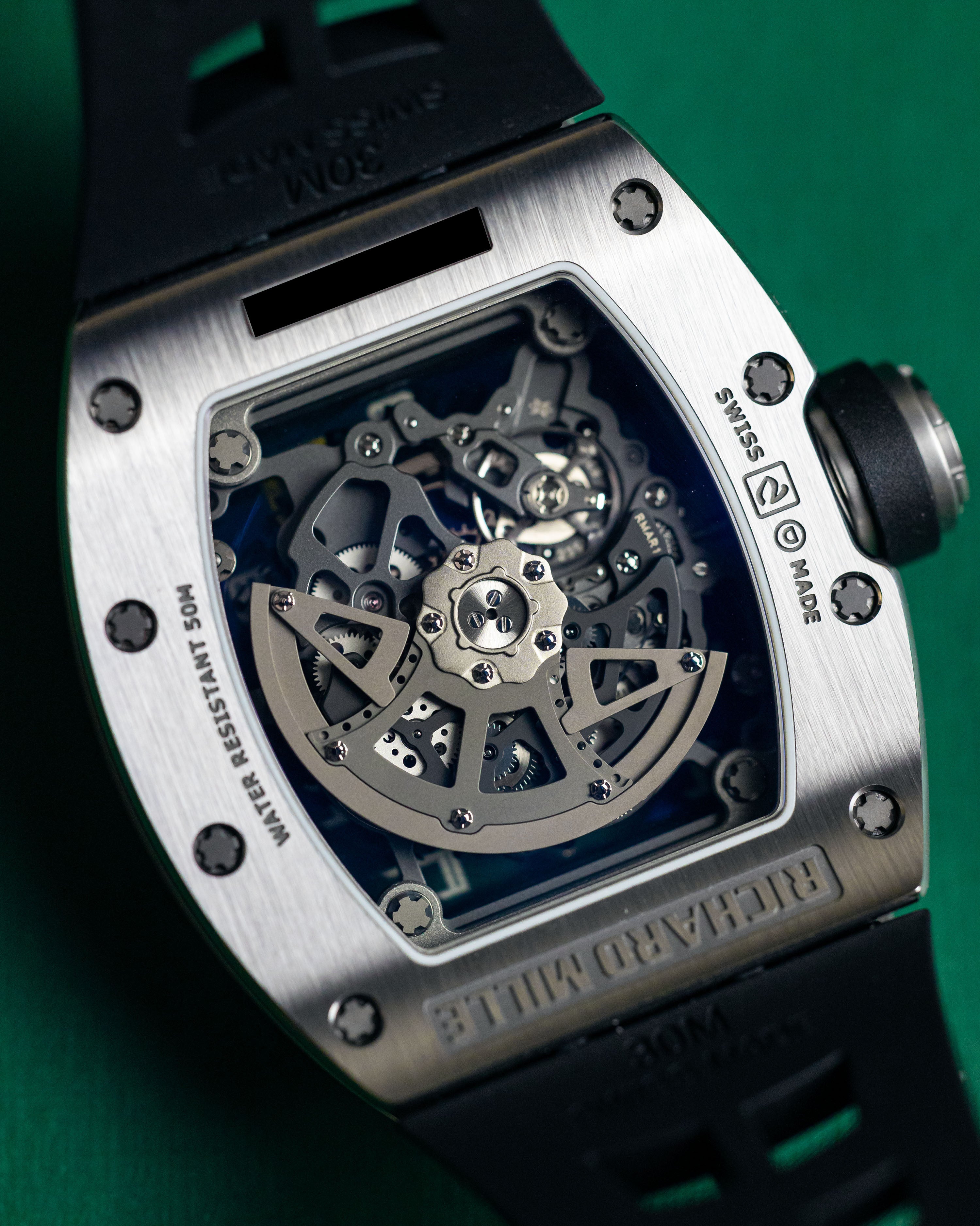 The RM030 features a skeletonised movement with power reserve and a clutch that is able to disengage the rotor when the movement is fully wound.