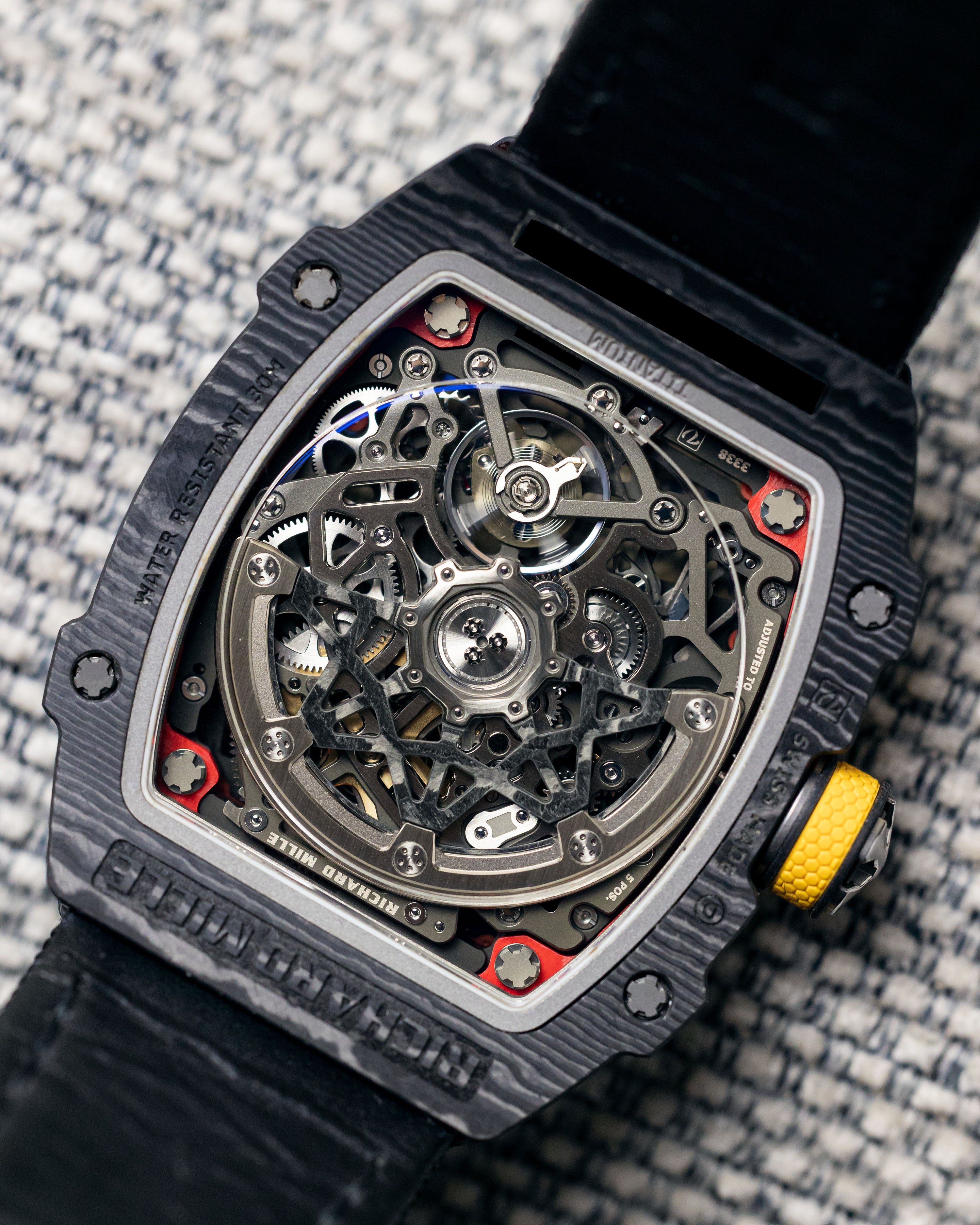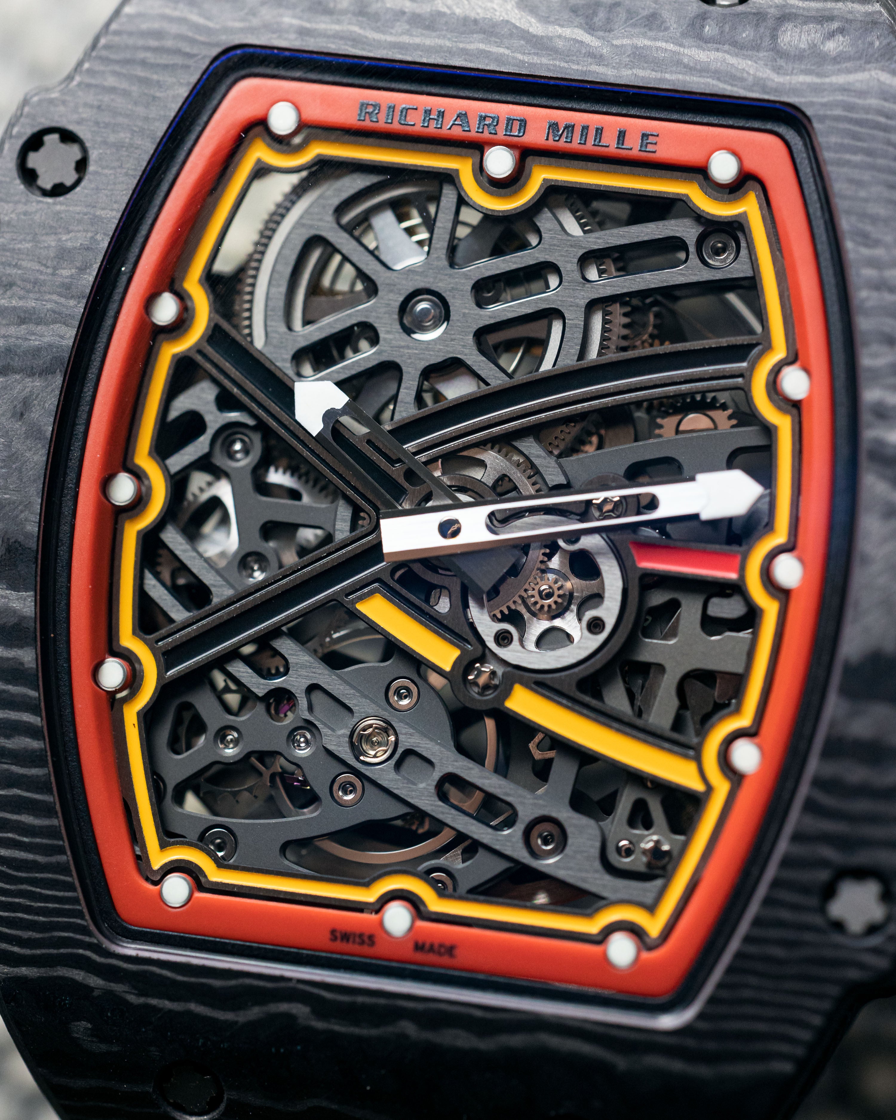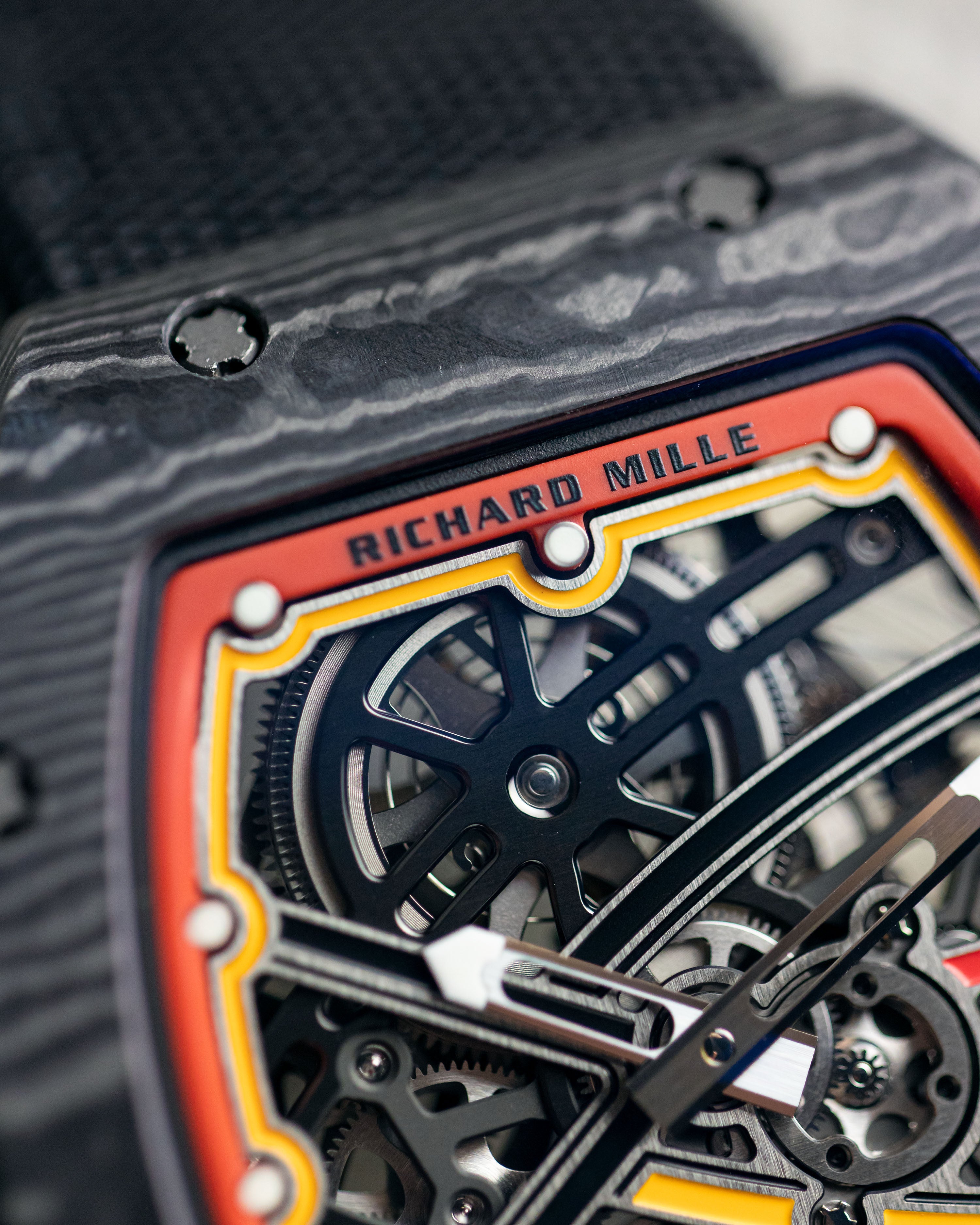 One of the thinnest and most comfortable RM designs, the RM67 series of watches maintain the iconic tonneau shaped case while introducing their NTPT carbon technology to the case material. The result is a watch that weighs a mere 32grams with proportions that are reminiscent of the AP Jumbo royal oak or 5711 Patek Philippe Nautilus.