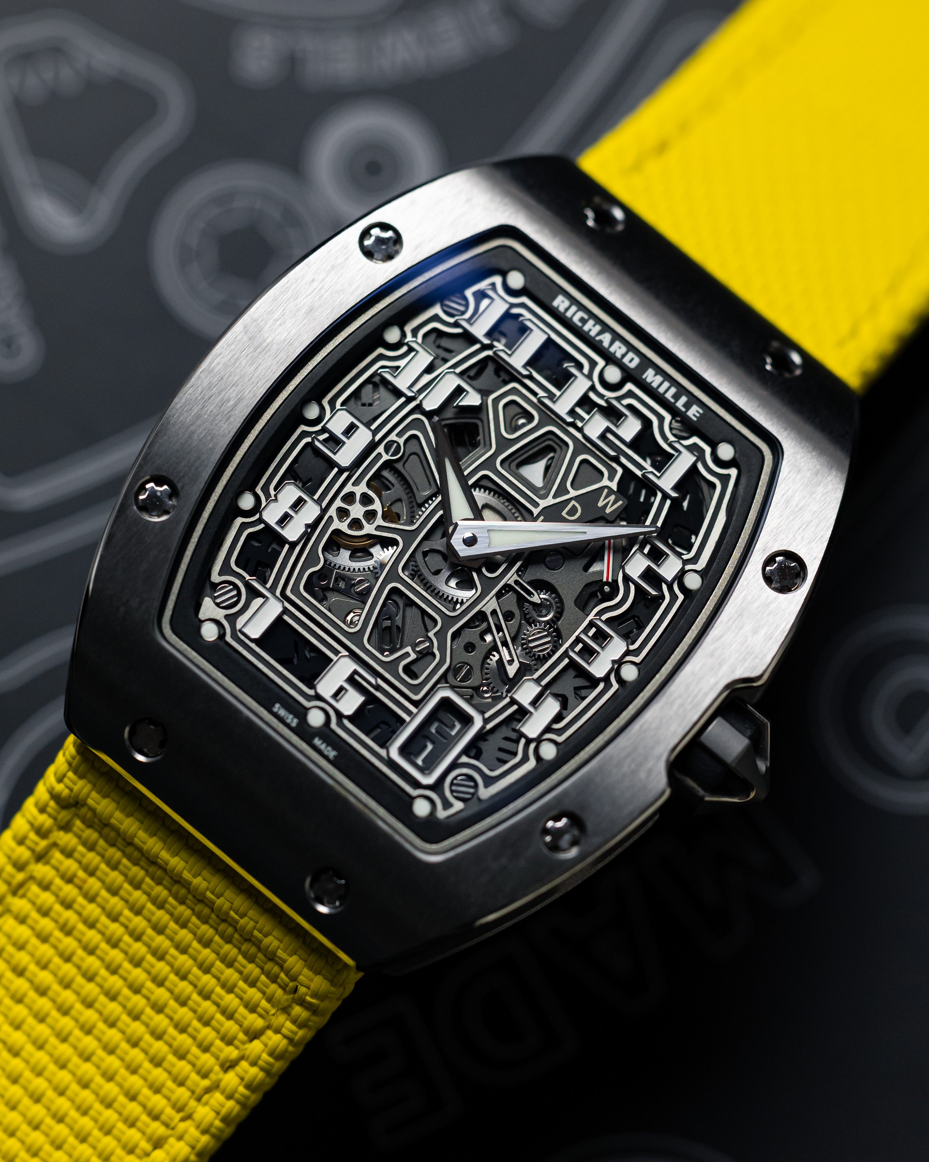 Introducing Richard Mille’s first ultra the movement within its iconic tonneau-shaped case. Crafted from titanium, it maintains the brand’s signature bold aesthetic while offering a remarkably slim profile making it one of the most wearable models in the RM collection.