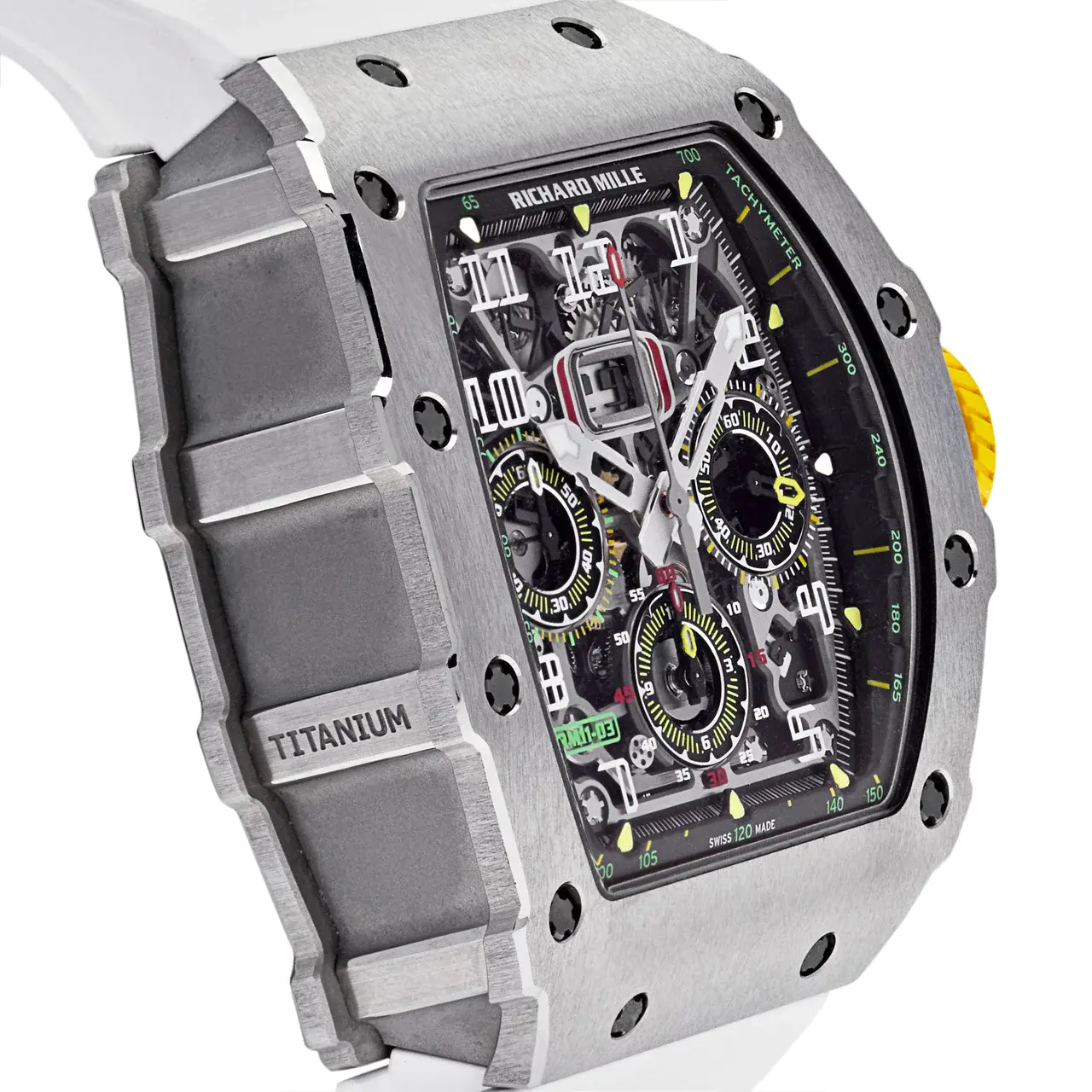 Indulge in the world of horological excellence and contemporary design with the Richard Mille Titanium Automatic Flyback Chronograph RM11-03. This extraordinary timepiece is a testament to Richard Mille's commitment to pushing the boundaries of innovation and precision engineering.