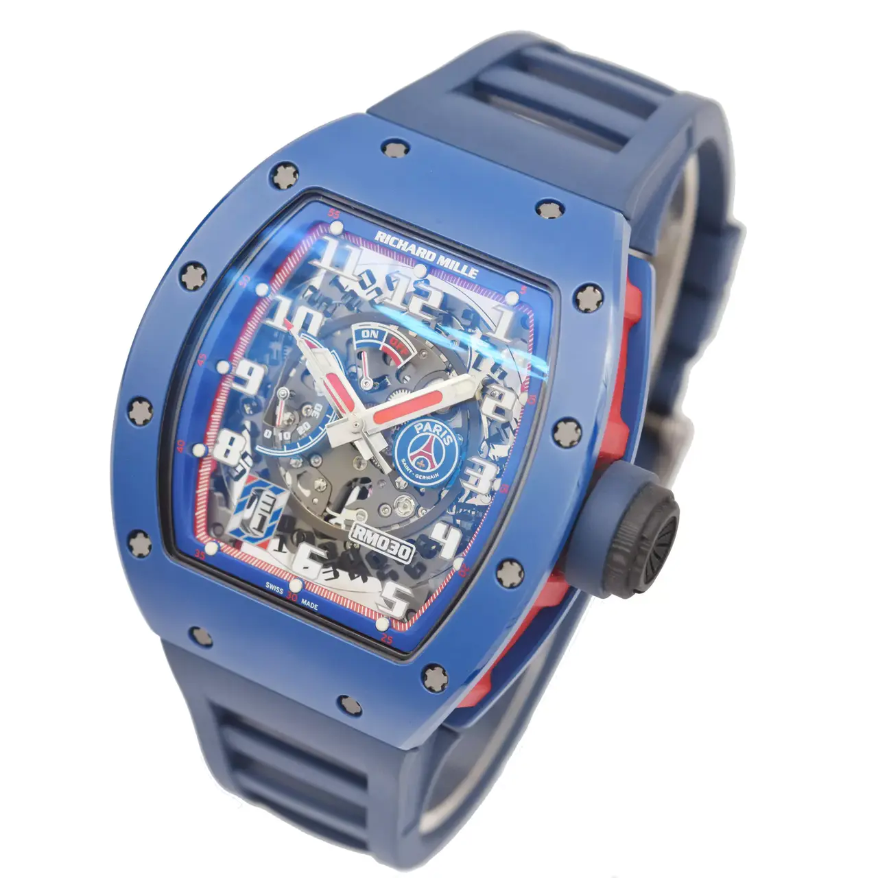 Richard Mille RM-030 Blue Ceramic “PSG Edition” 50mm Blue Ceramic Case, Automatic Movement,Sapphire Glass, Transparent Dial & Arabic Numerals, Paris St. Germain badge At 3 o’clock. Red Carbon NTPT Case Band, Blue Rubber Strap Fastens With a Richard Mille Titanium Double-Fold Clasp. 55 Hour Power Reserve. Limited To 100 Pieces Worldwide Pick up this beautiful timepiece at a steal! Comes as a complete set with box and papers. Please feel free to reach out with any questions. All items are unworn with all plastics and tags intact, unless specifically stated otherwise. The item includes the original manufacturer box, manufacturer warranty, and instruction manual. The picture used for this listing is a stock picture provided by the manufacturer. Kindly contact us if you require actual photos of this model. Serious Inquiries Only. All sales will have a 7% sales tax added to the final purchase. We offer complimentary overnight shipping and insurance for all orders shipping within the Continental US. International buyers are responsible for duties/taxes for the receiving country. We are neither affiliated with nor an authorized dealer for the item listed above. All models have been confirmed 100% authentic and purchased from the respective brand or an authorized dealer of the brand. Open to offers, feel free to check out our page & collections, and reach out to us if you have any questions or inquiries! |
