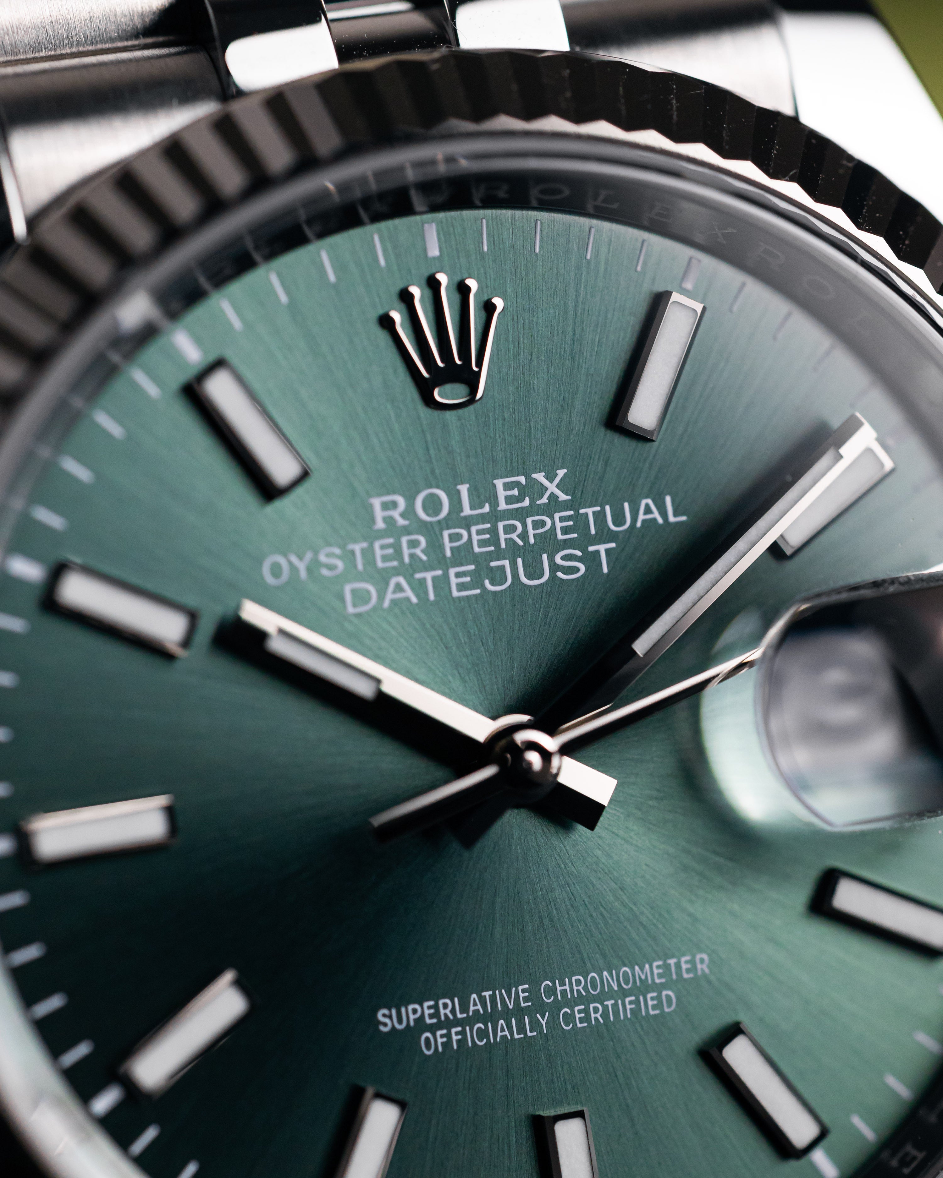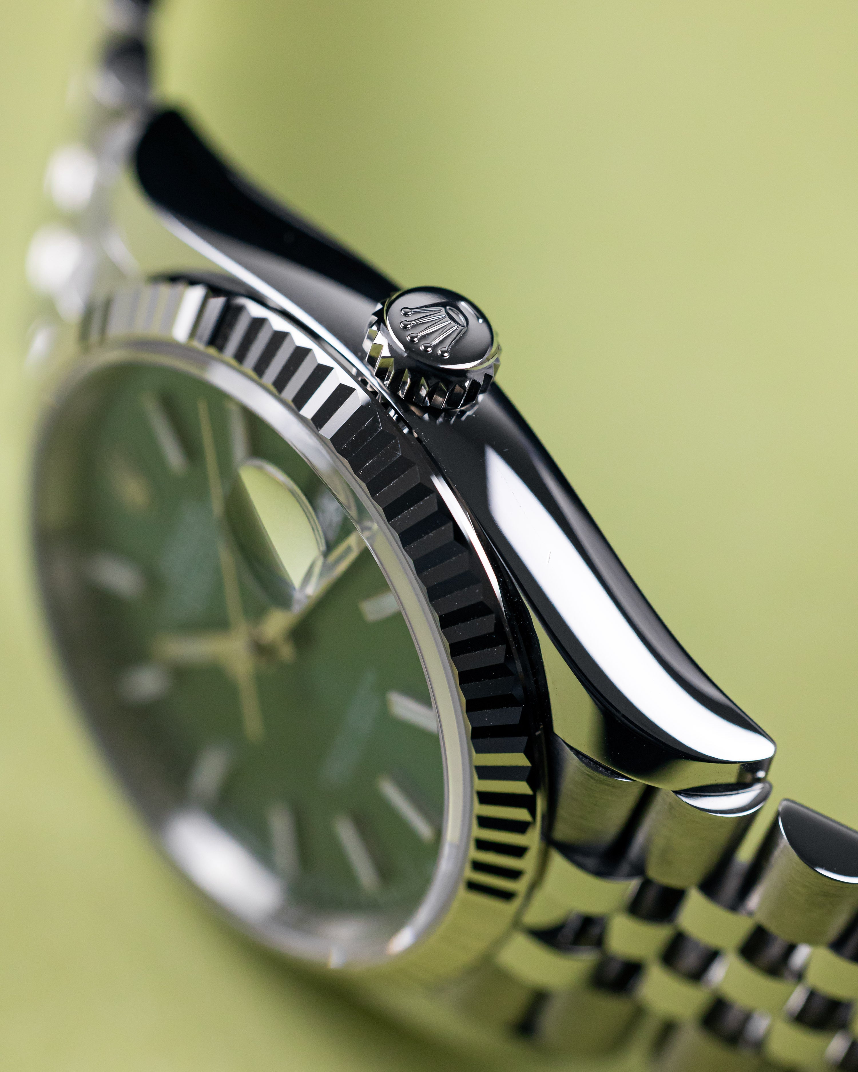 Since the release of the mint green dial in 2022, this Datejust combination has continued to be one of the most sought after combination paired with the white gold fluted bezel and jubilee bracelet.