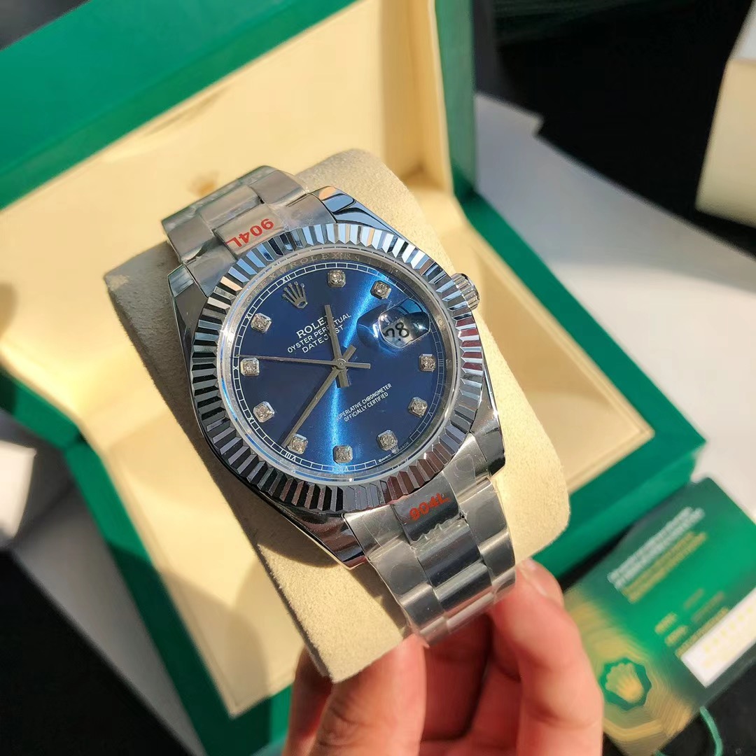Swisstime. sr Datejust Swiss watches look feel and have the exact same dimensions as the original using incredible precision down to a nanometer! So the weight is exactly the same with the original and all watch parts inside/out are interchangeable with a genuine part. Datejust II & 41=41mm, Datejust=36mm