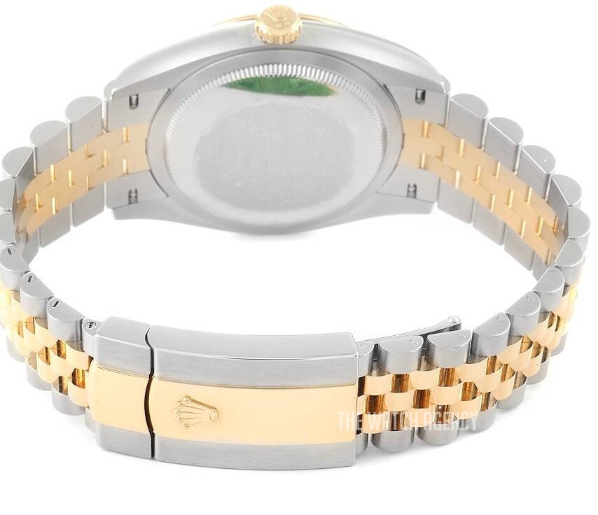 - Polished Solid 18k Yellow Gold with Brushed 904L Oystersteel Stainless Steel Jubilee Bracelet