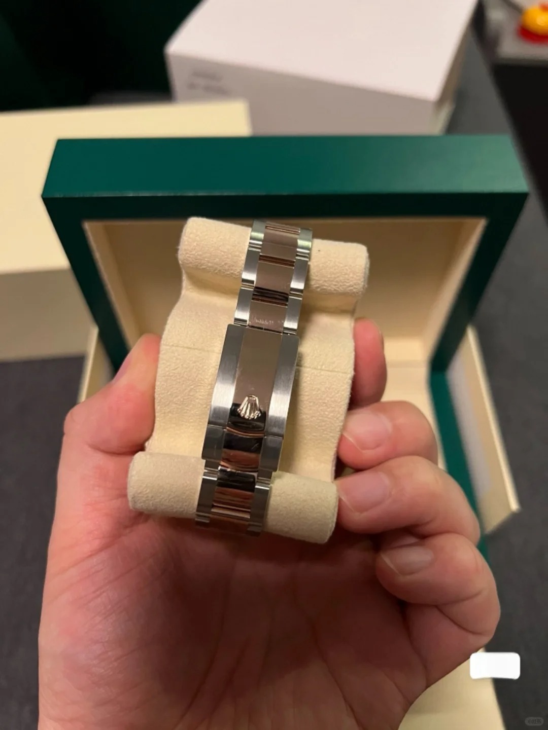 MaterialEverose Rolesor - a combination of 904L steel and 18 ct Everose gold