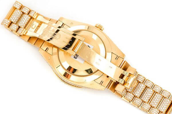This Iced out watches Rolex Day-Date is made of Yellow Gold and 40mm with 20.30ctw of Moissanite diamonds. This watch is Rolex quality standards. This watch comes with an Rolex box.