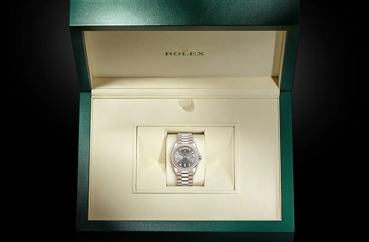 The Day-Date has always epitomized prestige and innovation. Exclusively made from precious metals, it was the first calendar wristwatch to indicate, in addition to the date, the day of the week spelt out in full in a window on the dial. Rolex is releasing the Oyster Perpetual Day-Date 40 in 950 platinum – easily recognizable thanks to its ice-blue dial – with a fluted bezel for the first time. A cornerstone of Rolex’s aesthetic heritage, this striking component, which is found only on some Classic models in the Oyster Perpetual collection and until now has only been made in 18 ct gold, now exists in the most prestigious metal available.