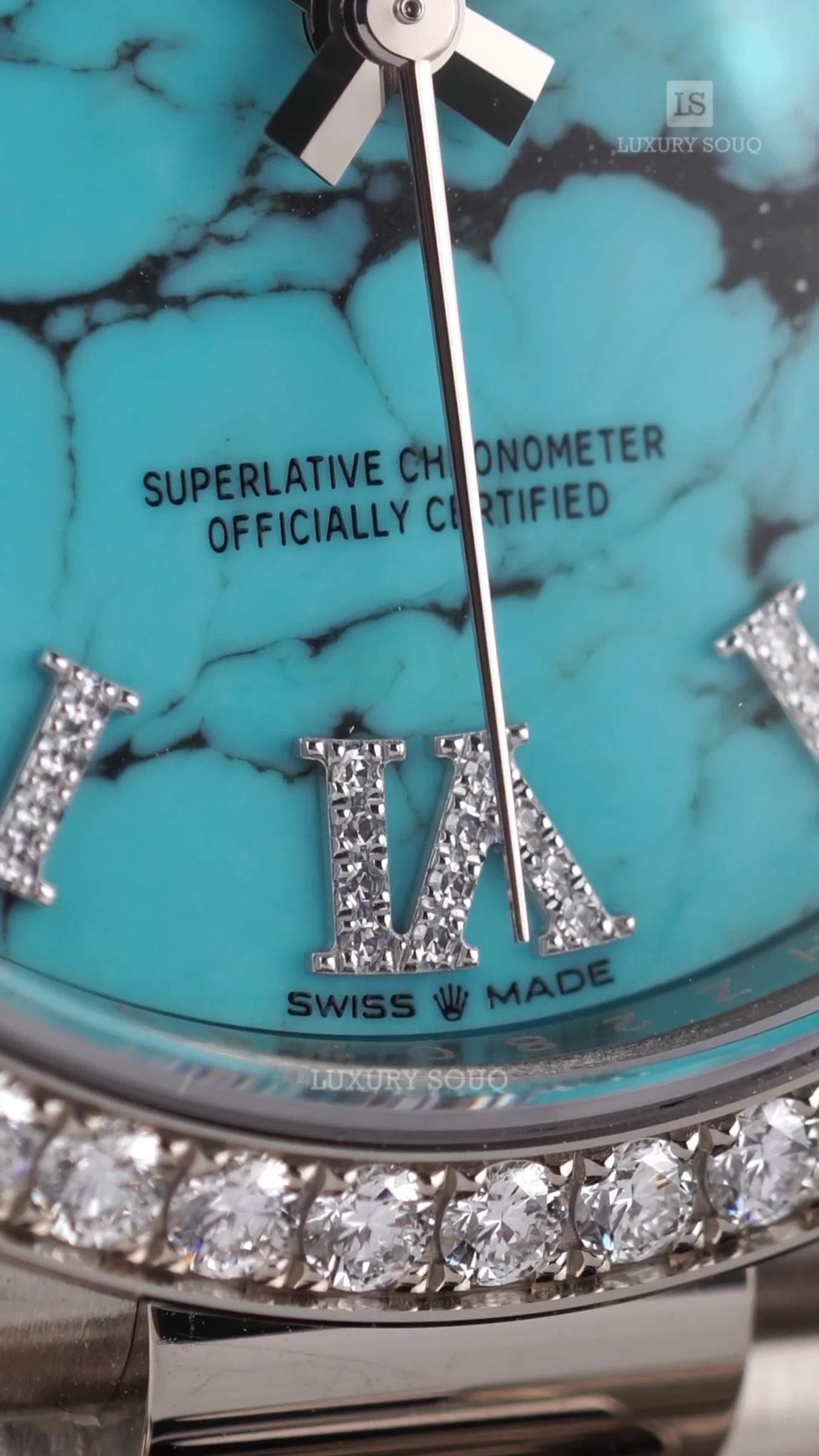 ✅ TURQUOISE DIAL WITH DIAMOND HOUR MARKERS – A UNIQUE AND STRIKING DISPLAY THAT ENHANCES EXCLUSIVITY.
