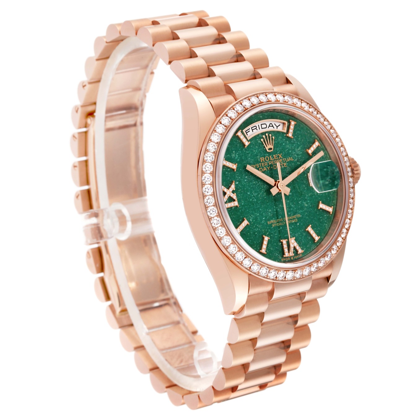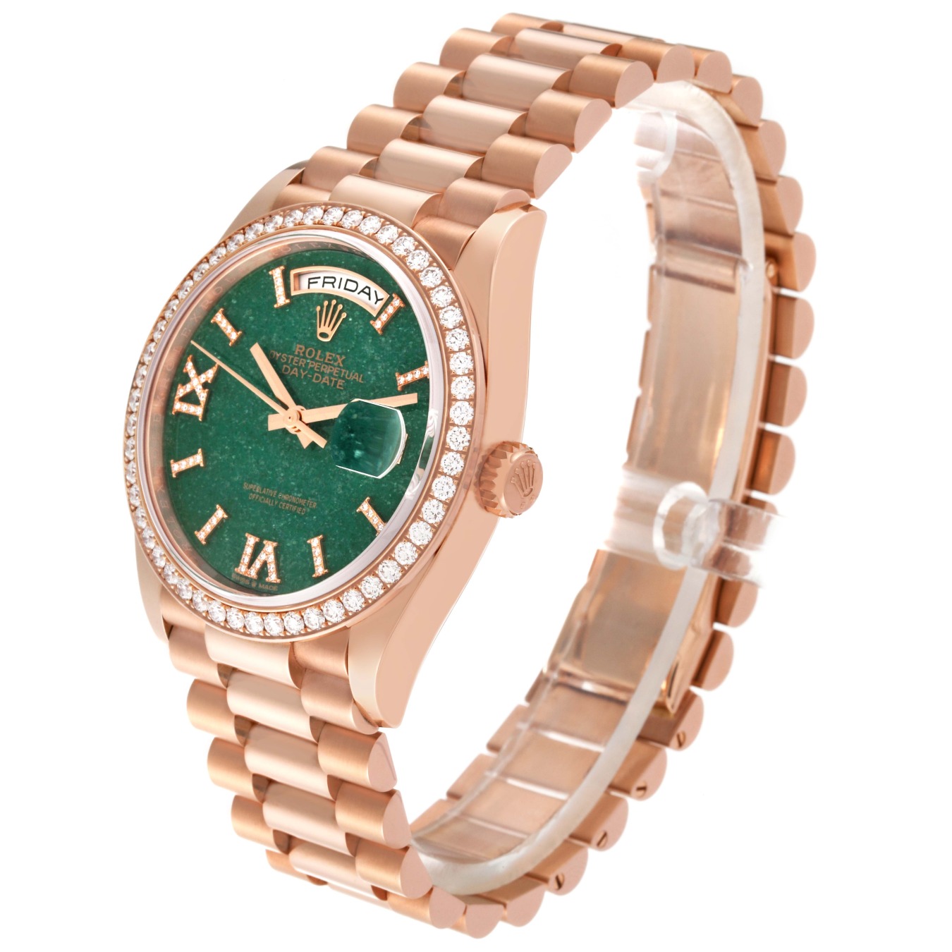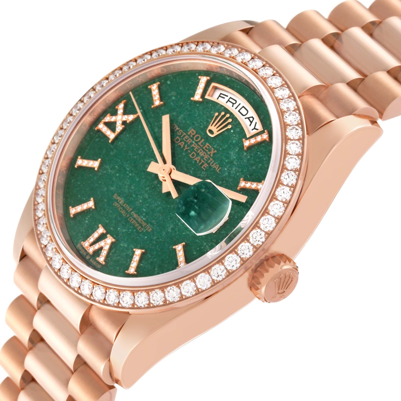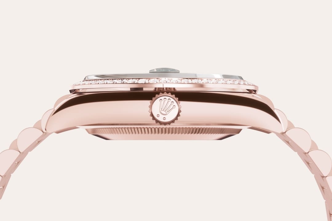 To preserve the beauty of its pink gold watches, Rolex created and patented an exclusive 18 ct pink gold alloy cast in its own foundry: Everose gold. Introduced in 2005, 18 ct Everose is used on all Rolex Oyster models in pink gold.