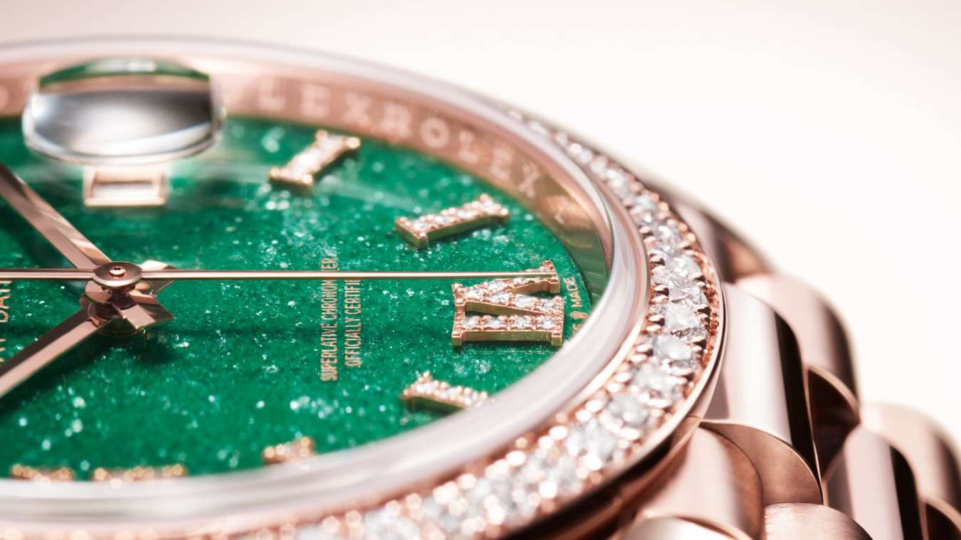 Gem-setters, like sculptors, finely carve the precious metal to hand-shape the seat in which each gemstone will be perfectly lodged. With the art and craft of a jeweller, the stone is placed and meticulously aligned with the others, then firmly secured in its gold or platinum setting. Besides the intrinsic quality of the stones, several other criteria contribute to the beauty of Rolex gem-setting: the precise alignment of the height of the gems, their orientation and position, the regularity, strength and proportions of the setting as well as the intricate finishing of the metalwork. A sparkling symphony to enhance the watch and enchant the wearer.