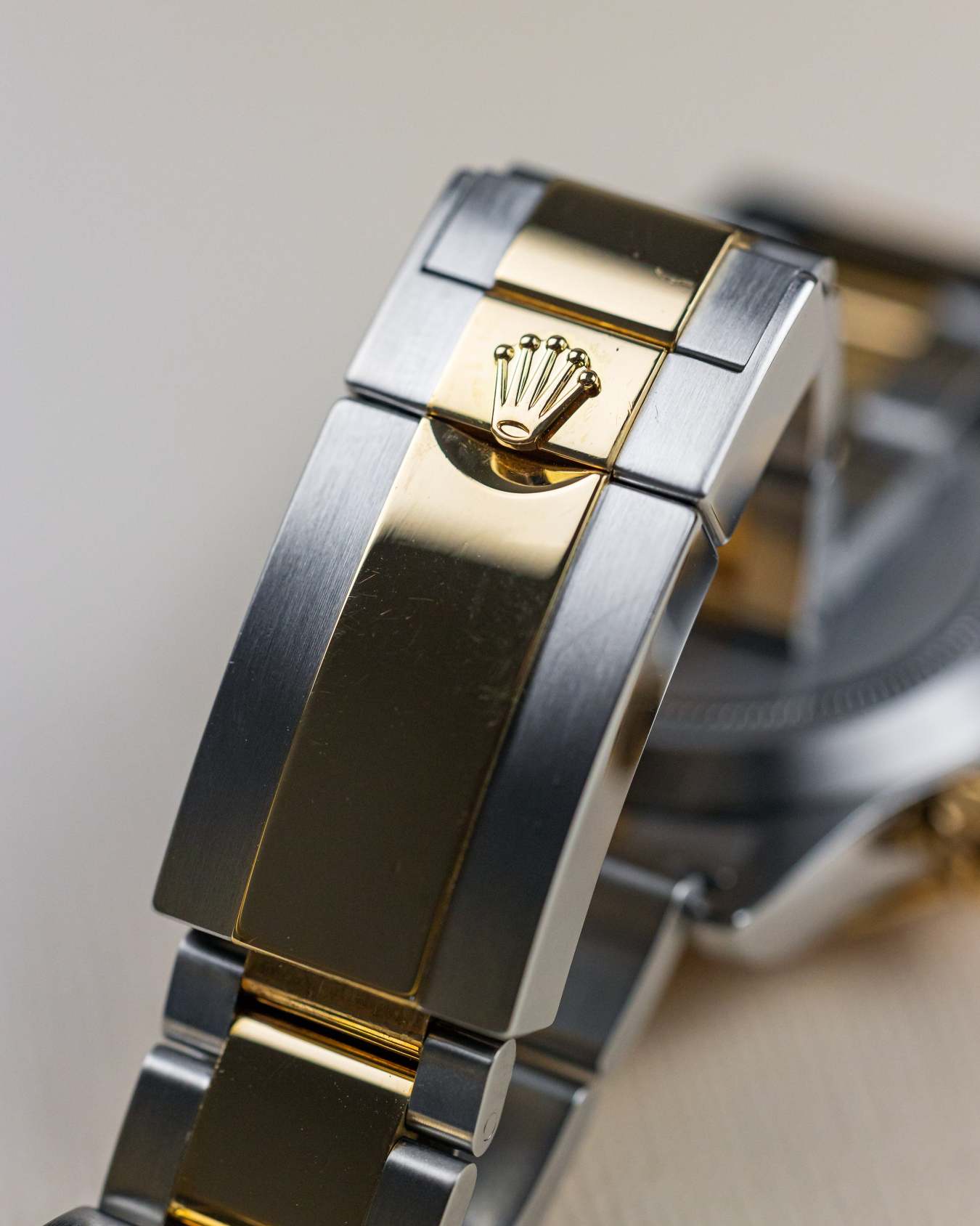 - Polished Solid 18k Yellow Gold with Brushed 904L Oystersteel Oyster Bracelet