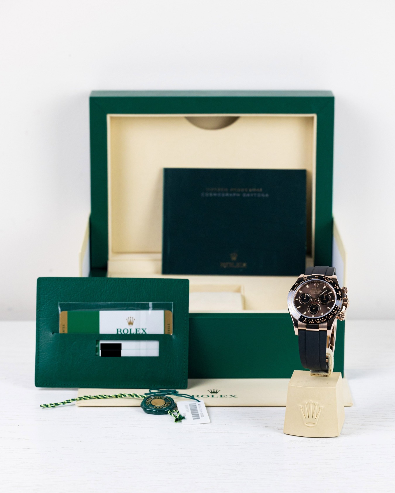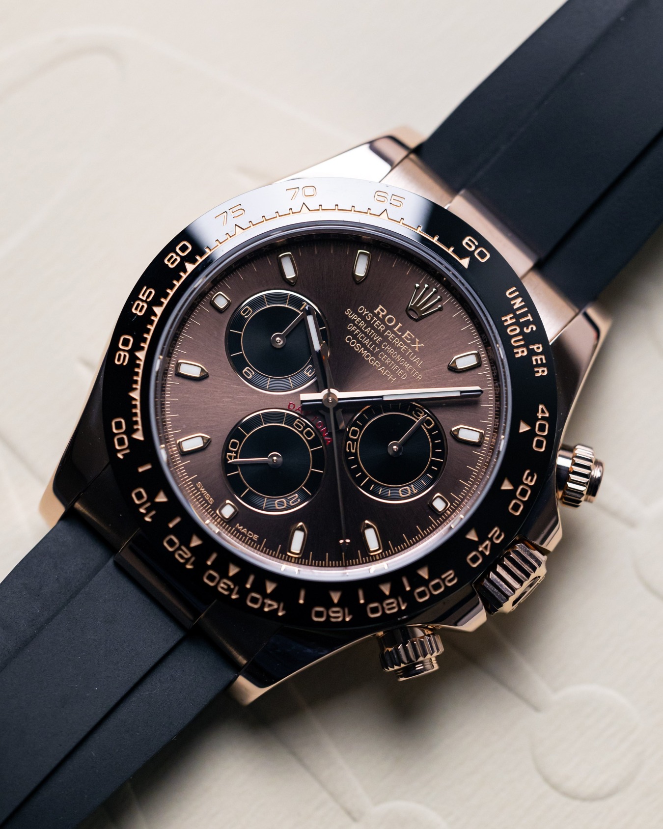 Fitted to the 'best in class' waterproof rubber Oysterflex bracelet, this immensely sought-after precious metal Daytona is brand new.