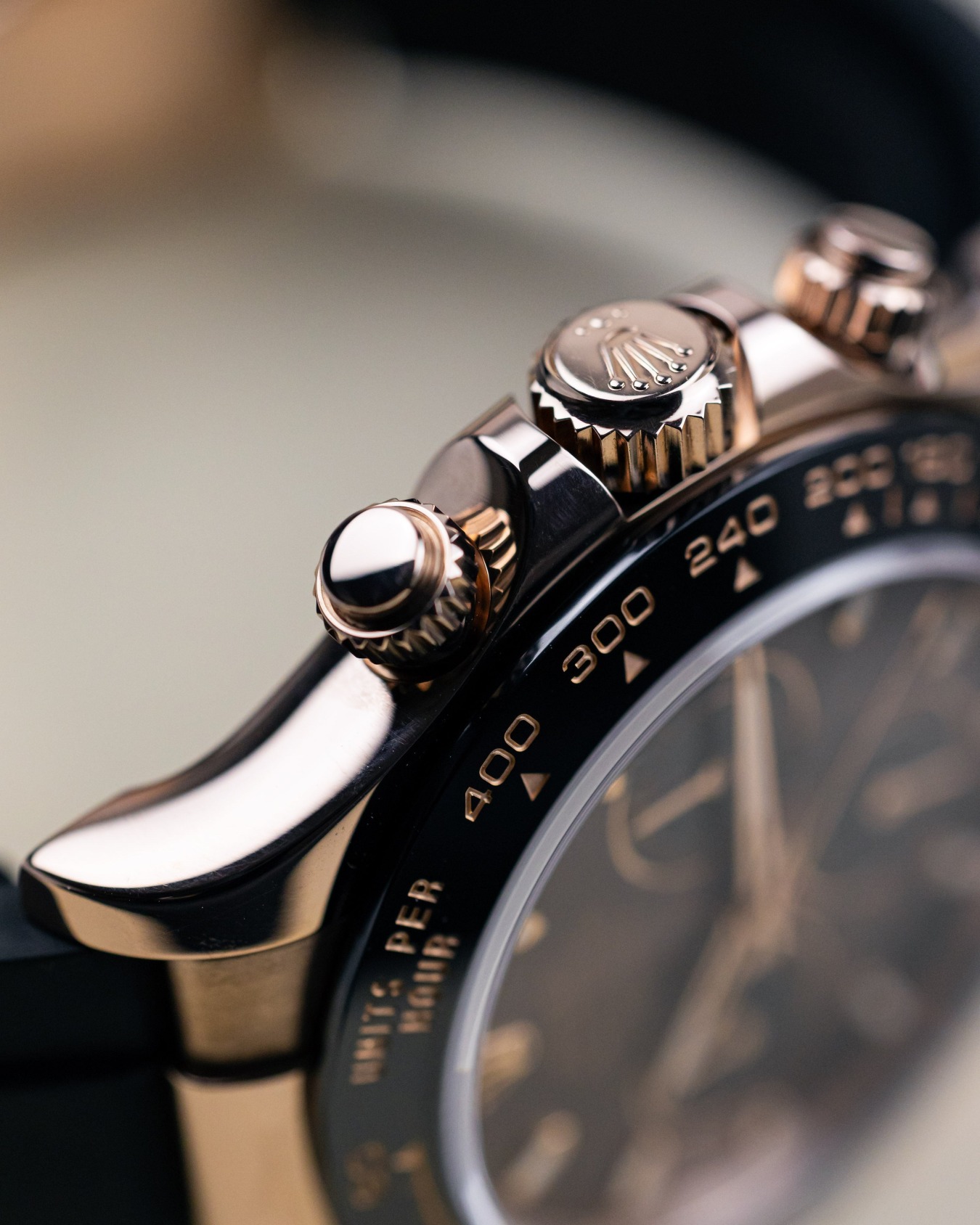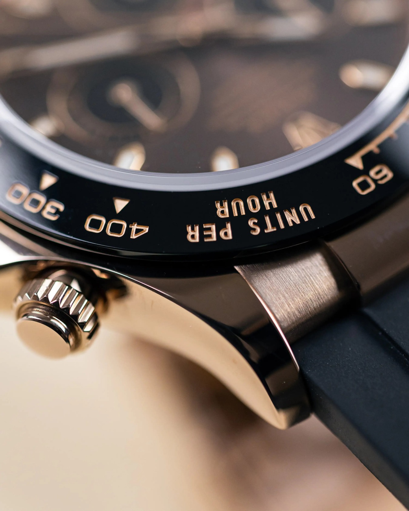 • Bezel Type: Black monobloc Cerachrom bezel in ceramic with moulded tachymetric scale