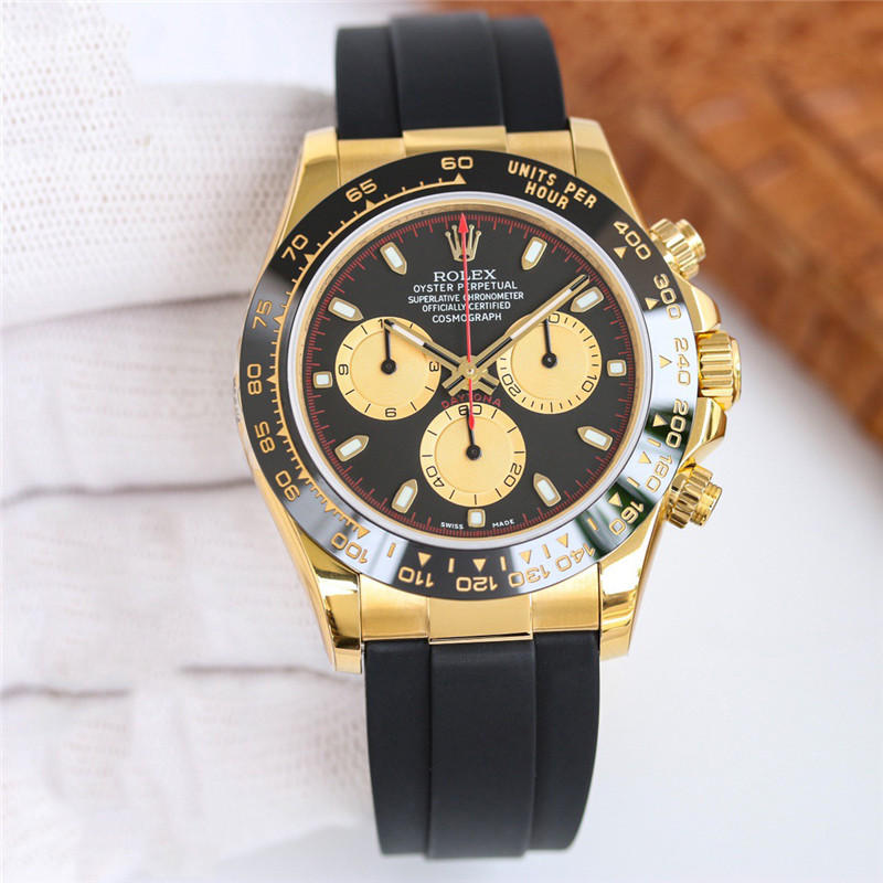 The Daytona’s chronograph feature functions are activated by pushers that screw down like the winding crown when they are not in use, guaranteeing waterproofness to 100 metres. One press to start, stop or reset the chronograph produces a crisp, clear click that was perfected using the most advanced technology. watchmakers also perfected the mechanism to suit the ideal finger pressure on the pushers, and engineered it to provide an instantaneous and accurate start to the timing without sacrificing reliability.